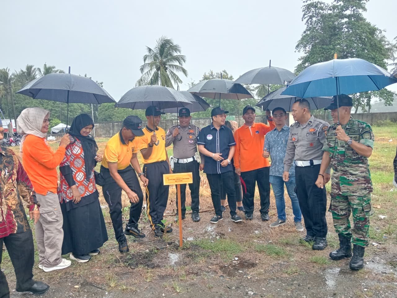 Meski diguyur hujan, semangat peserta tidak surut dalam melakukan penghijauan. Kegiatan ini turut dihadiri pejabat Forkopimda, TNI-Polri, Dirut PT Mitra Pelabuhan Mandiri (Pelabuhan Jetty), tokoh agama, tokoh masyarakat, serta komunitas Gerakan Peduli Lingkungan (GPL).(0105).