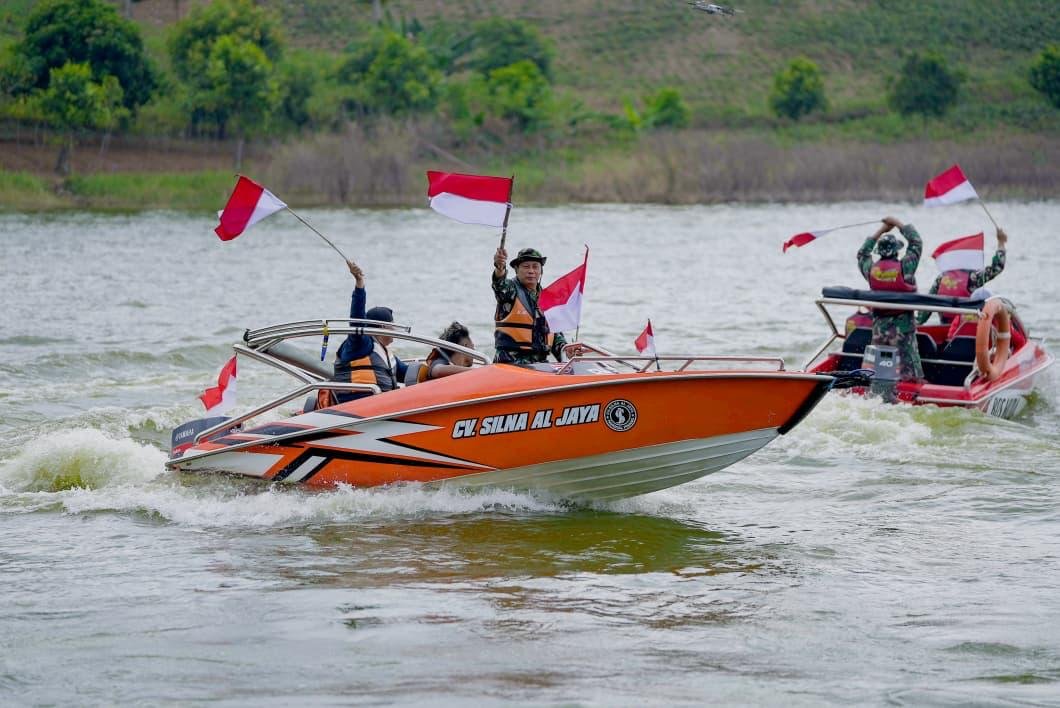 KUDUS – Air Bendungan Logung beriak pelan saat beberapa perahu motor bergerak menembus permukaan. Di atasnya, bendera merah putih berkibar tegak, seolah berbicara tentang semangat yang tak pernah padam meski delapan dekade sudah Indonesia merdeka.
