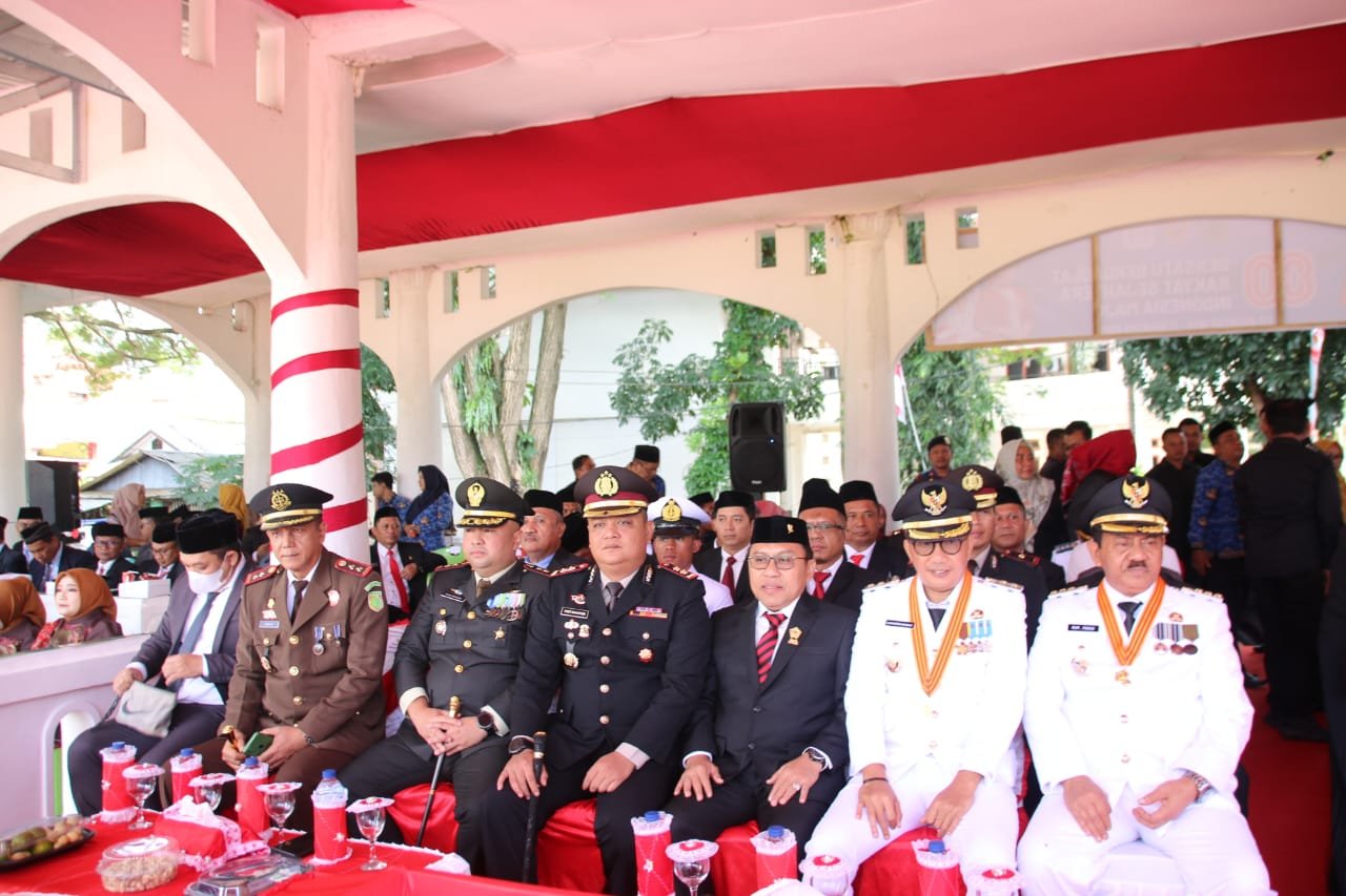 Acara sakral ini dipimpin langsung oleh Bupati Boalemo, Drs. H. Rum Pagau, selaku inspektur upacara. Turut hadir mendampingi, Komandan Distrik Militer (Dandim) 1316/Boalemo, Letkol Czi Yuda Herizal, S.H., bersama Wakil Bupati, Hi. Lahmudin Hambali, Ketua DPRD, Karyawan Eka Putra Noho, dan Kapolres Boalemo, AKBP Sigit Rahayudi. Kehadiran para pejabat ini menegaskan sinergi antara pemerintah daerah dan unsur pimpinan daerah dalam menjaga semangat kemerdekaan.