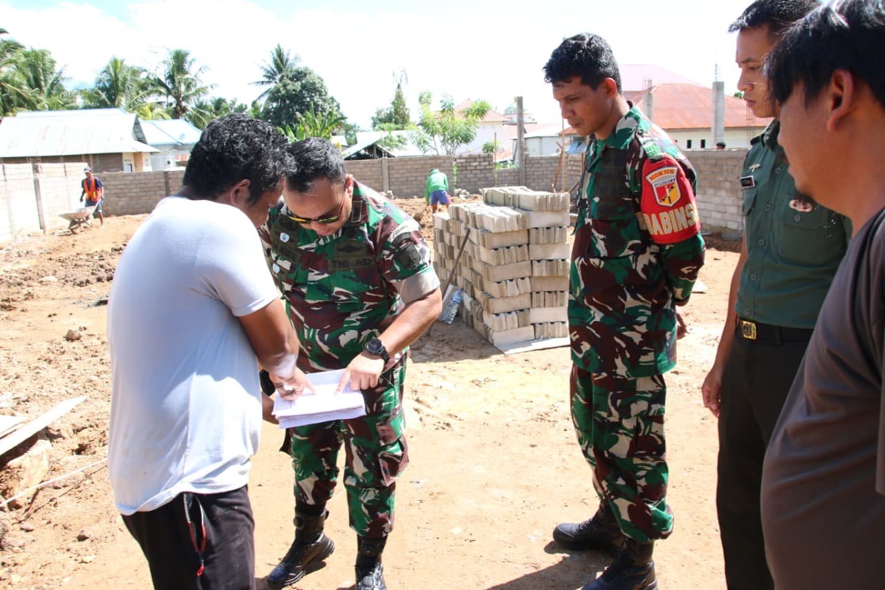 Dandim juga menekankan agar pekerjaan tidak terhenti hanya karena kendala material. “Kerjakan apa yang bisa menjadi prioritas untuk dikerjakan lebih cepat. Jika material bangunan belum ada, jangan menunggu. Kerjakan terlebih dahulu bagian yang bisa dikerjakan. Jika tembok sudah berdiri tetapi besi atap belum tersedia, kerjakan dulu saluran air,” ujarnya.