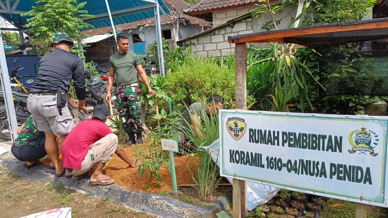 Klungkung,- Koramil 1610-04/Nusa Penida melaksanakan kegiatan gotong royong perawatan dan pemeliharaan urban farming yang berada di lahan pembibitan milik Koramil 1610-04/Nusa Penida, Sabtu ( 26/07/25 ).