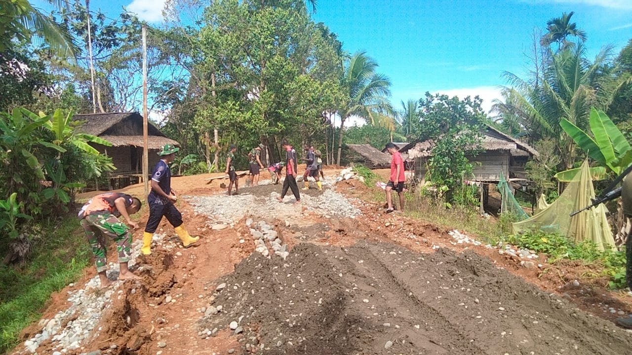 Pengerjaan jalan tersebut dilakukan secara gotong royong antara personel Satgas TMMD, pemerintah daerah, dan masyarakat. Kolaborasi ini menjadi wujud nyata sinergi TNI bersama rakyat dalam mempercepat pemerataan pembangunan di wilayah perbatasan.