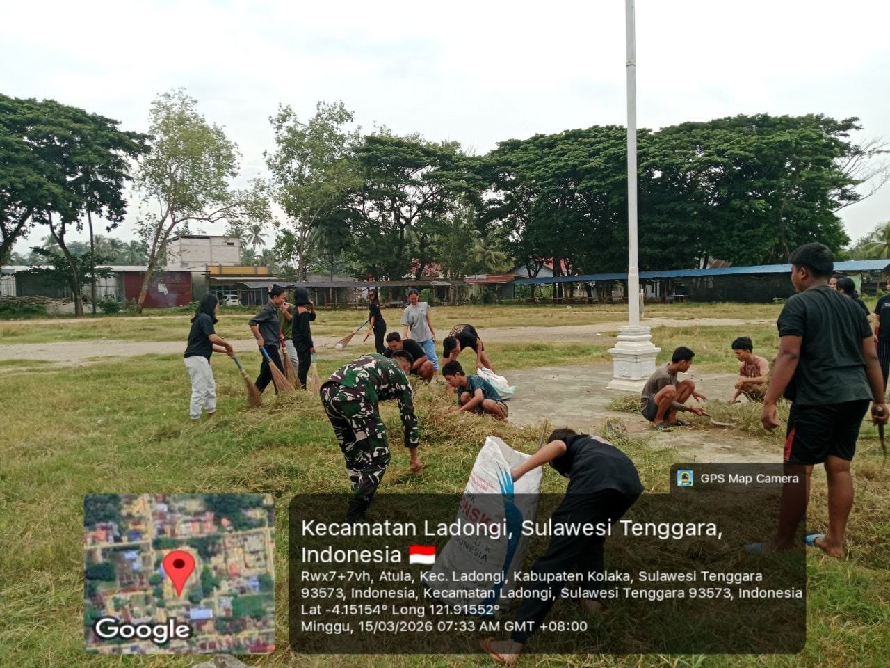 Kolaka Timur – Untuk menjaga kebersihan lingkungan sekaligus memperkuat ikatan dengan masyarakat, Babinsa Koramil 1412-01/Tirawuta, Serda Mansur, melaksanakan karya bakti bersama pemuda dari Kelurahan Atula. Kegiatan ini berlangsung di Lapangan Kelurahan Atula, Kecamatan Ladongi, Kabupaten Kolaka Timur.