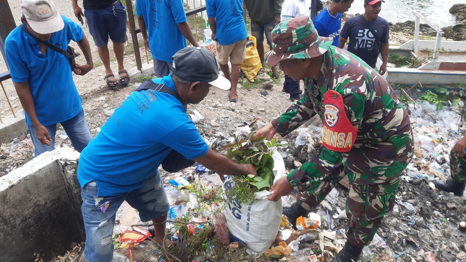 NTT Rote Ndao – Dalam upaya mewujudkan masyarakat hidup sehat dengan lingkungan yang bersih, Koramil 02/Pantai Baru Kodim 1627/Rote Ndao melaksanakan Karya Bakti (Karbak) membersihkan lingkungan Pelabuhan ASDP Pantai Baru untuk mengurangi dampak penyebaran penyakit.
