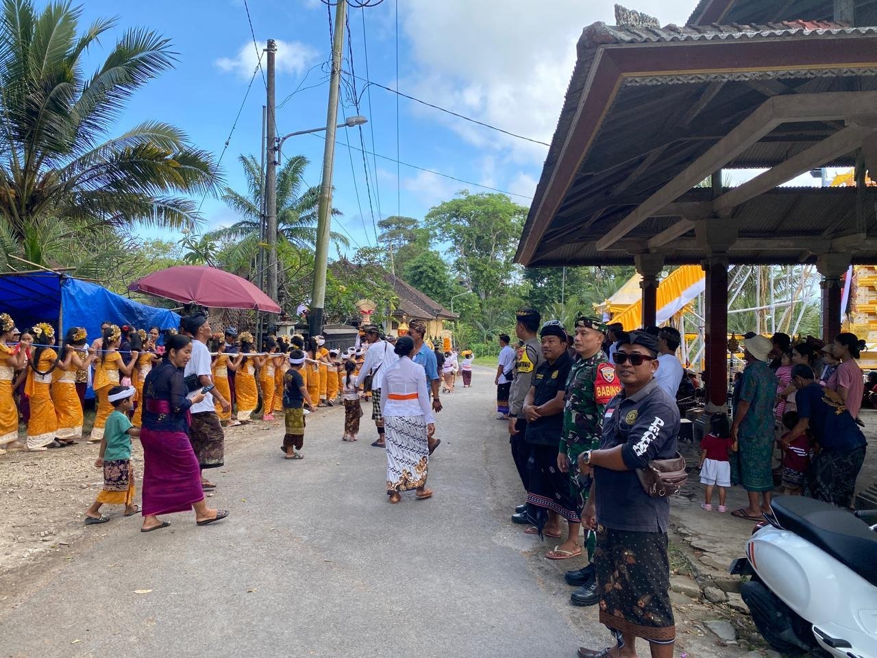 Dengan banyaknya warga yang hadir, Babinsa dan Bhabinkamtibmas serta pecalang hadir untuk melaksanakan pengawalan dan pengamanan.