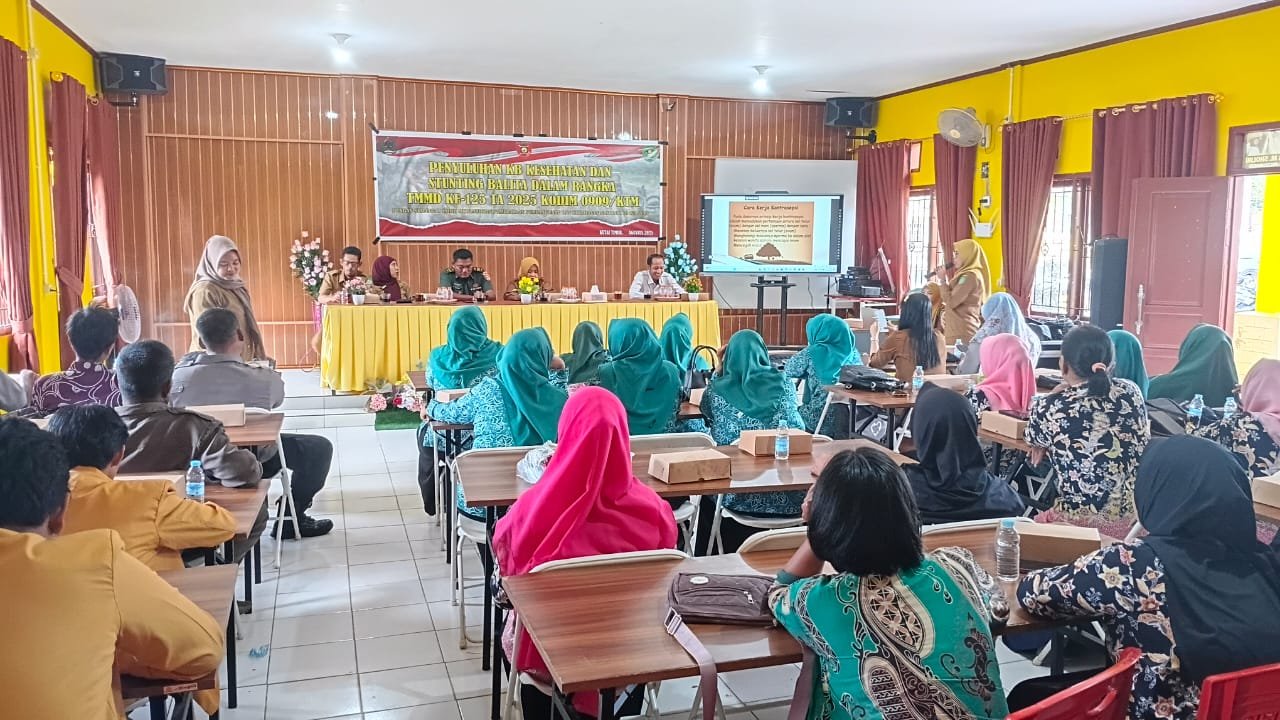 Penyuluhan yang berlangsung di Gedung BPU, Kecamatan Teluk Pandan, ini merupakan bagian dari sasaran non fisik TMMD Ke-125. Melalui kolaborasi dengan Puskesmas Teluk Pandan, kegiatan tersebut menghadirkan edukasi langsung kepada masyarakat mengenai pola hidup bersih dan sehat, kesehatan reproduksi, serta manfaat KB dalam meningkatkan kesejahteraan keluarga.