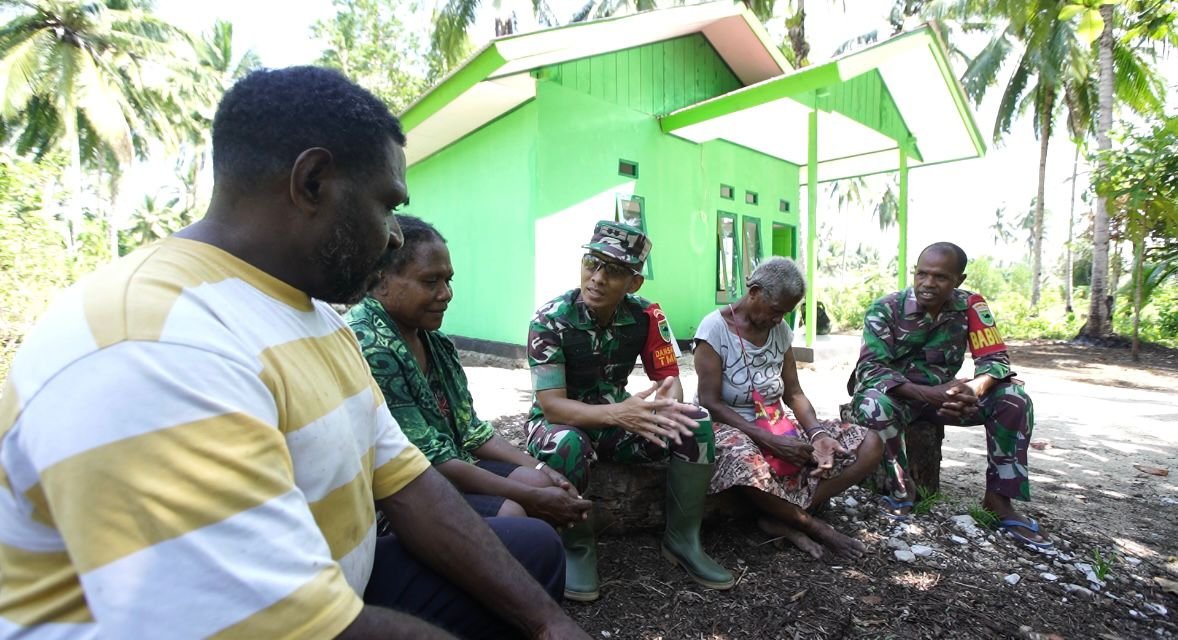Kaimana – Warga Kampung Sisir, Distrik Kaimana, Kabupaten Kaimana, menunjukkan kebahagiaan saat bertemu dengan Dansatgas TMMD ke-127 Kodim 1804/Kaimana, Letkol Kav Sulistyo Nugroho, S.IP., M.IP, pada Sabtu (07/03/2026). Pertemuan yang berlangsung penuh kehangatan ini berlangsung di lokasi program, di mana Dansatgas menyempatkan diri bercengkerama dengan Ibu Evelina Surawi dan Bapak Yosep Surawi, dua penerima manfaat dari program TMMD.