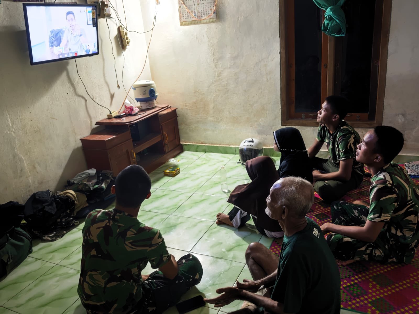 Kegiatan ini berlangsung di rumah Mesran, yang menjadi tempat tinggal sementara bagi anggota Satgas selama melaksanakan tugas pembangunan desa. Suasana hangat terlihat ketika anggota Satgas serta keluarga tuan rumah berkumpul untuk menikmati tayangan televisi sambil berbincang dengan akrab.