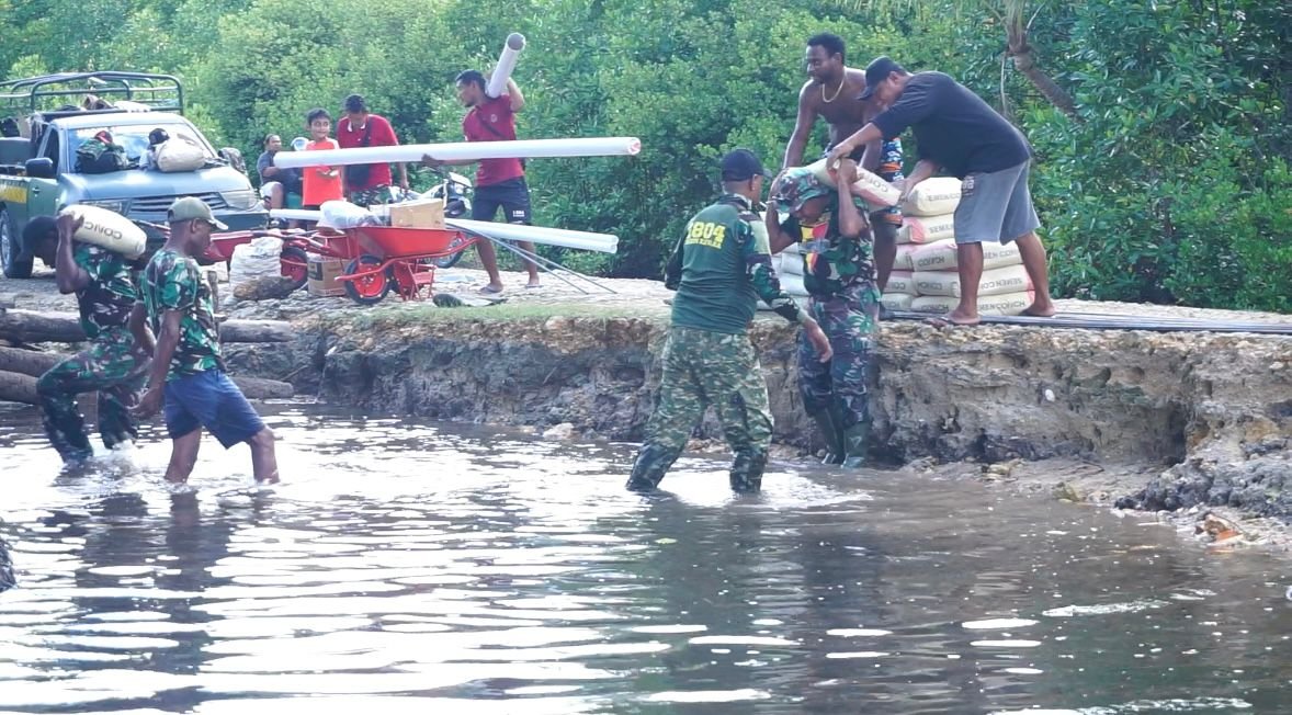 Proses pemindahan material dilakukan melalui jalur perairan yang menghubungkan Kampung Sisir 1 dan Kampung Sisir 2. Setibanya di lokasi tujuan, penurunan bahan bangunan dari perahu berlangsung dengan melibatkan semua pihak secara gotong royong, baik prajurit TNI maupun warga lokal.