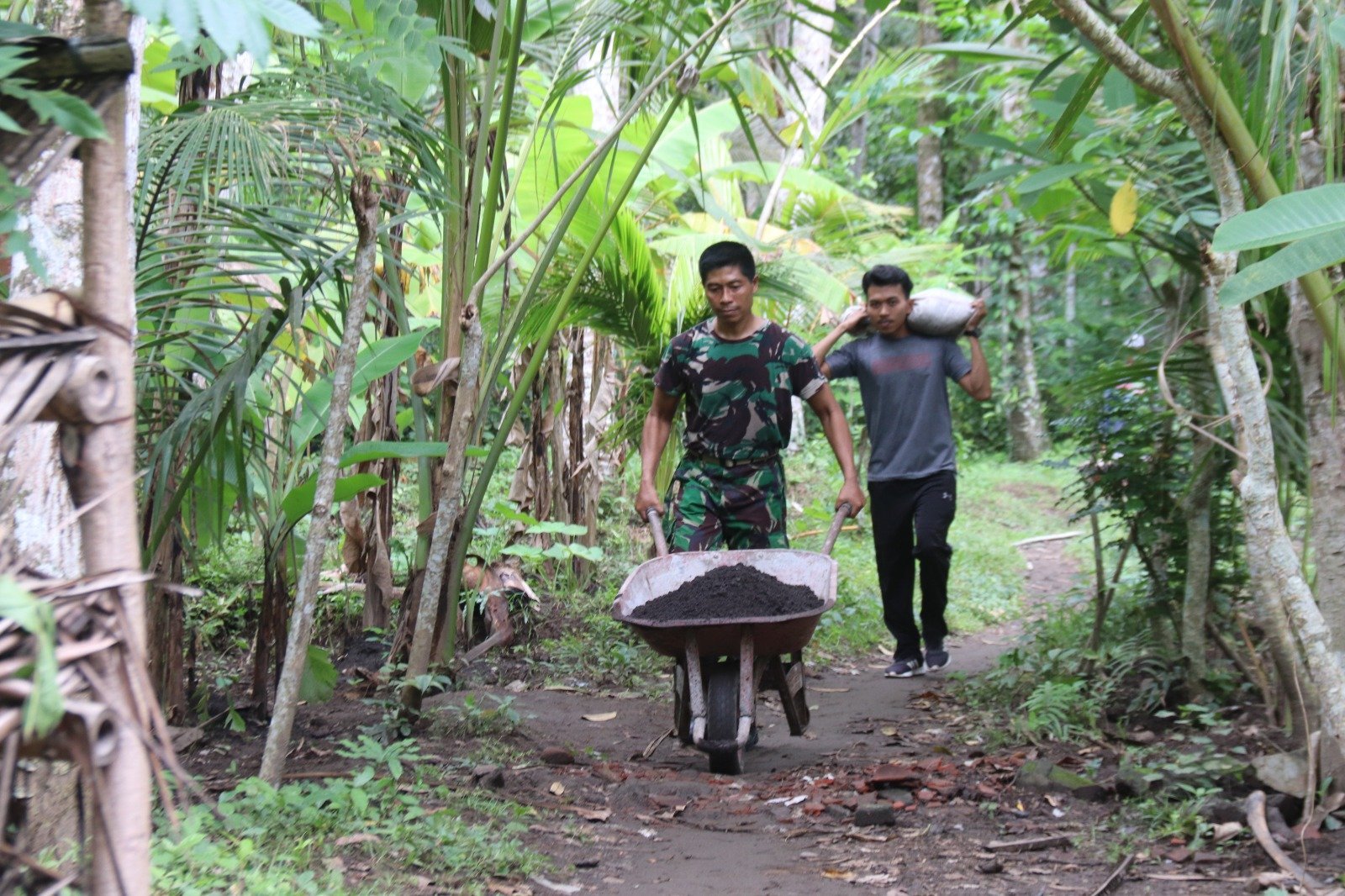 Sesekali diwarnai canda dan tawa, semakin menunjukkan kebersamaan dan kemanunggalan TNI dan masyarakat begitu terjalin kuat.