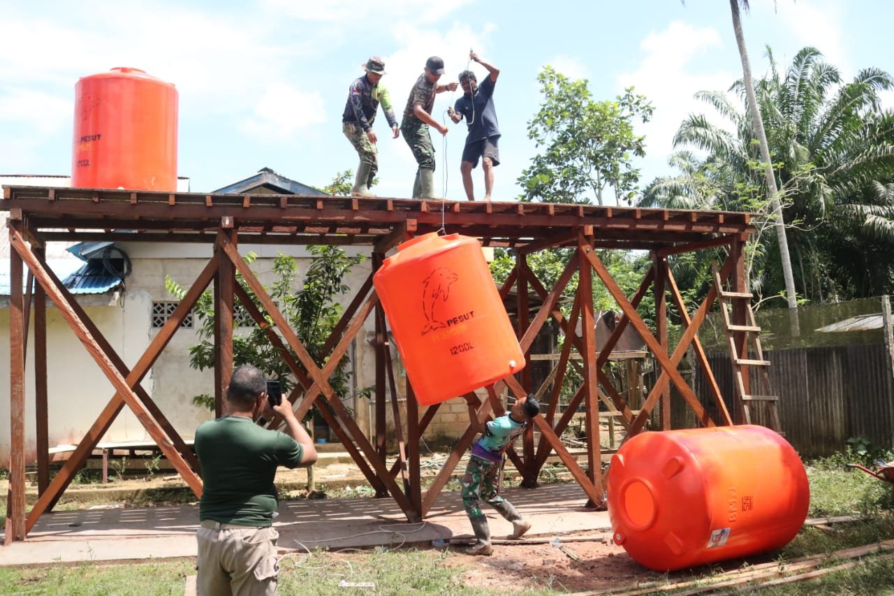 Kekuatan Rakyat Bersama TNI: Tandon Air Tertancap Kokoh di Atas Rangka