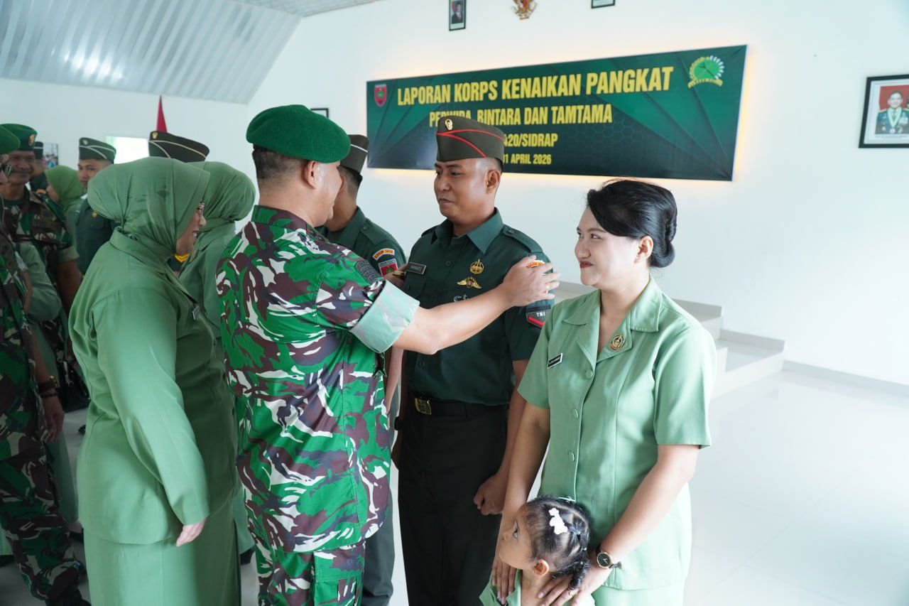 Aula Makodim 1420/Sidrap menjadi saksi berlangsungnya prosesi kenaikan pangkat bagi 11 personel di lingkungan Kodim 1420/Sidrap pada Rabu pagi, 1 April 2026. Kegiatan Korps Raport Perwira, Bintara, dan Tamtama ini dipimpin oleh Letkol Inf Andi Zulhakim Asdar, S.H.I., M.H.I., sebagai Dandim 1420/Sidrap.