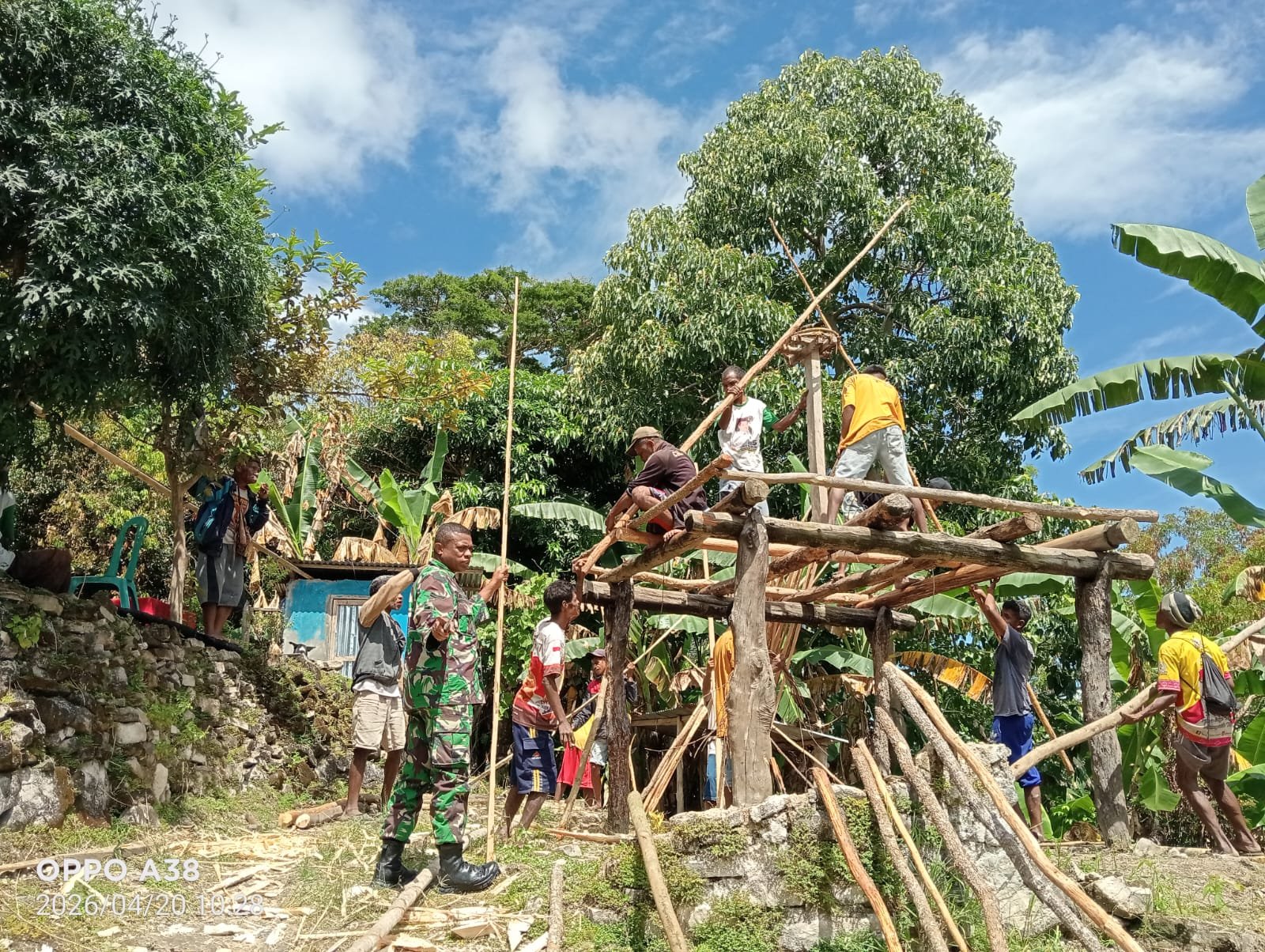 Kegiatan gotong royong tersebut dipenuhi dengan tawa, canda, dan semangat, menciptakan suasana harmonis saat membangun dapur yang diharapkan menjadi solusi bagi keluarga Yohanis.