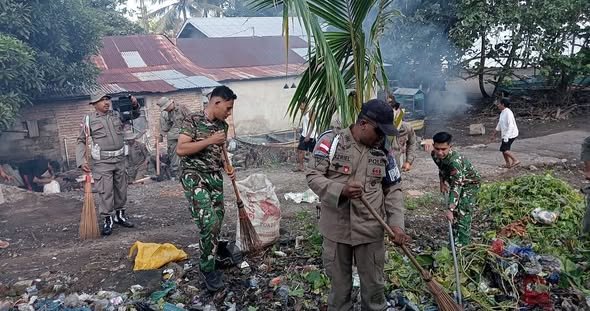 SIKKA – Anggota Koramil 1603-04/Kewapante dari Kodim 1603/Sikka melaksanakan kegiatan karya bakti dengan membersihkan Pasar Geliting yang terletak di Kecamatan Kewapante, Kabupaten Sikka, pada hari Sabtu, 7 Februari 2026. Kegiatan ini merupakan salah satu bentuk nyata dari kepedulian TNI terhadap kebersihan lingkungan serta upaya menjaga kesehatan masyarakat setempat.