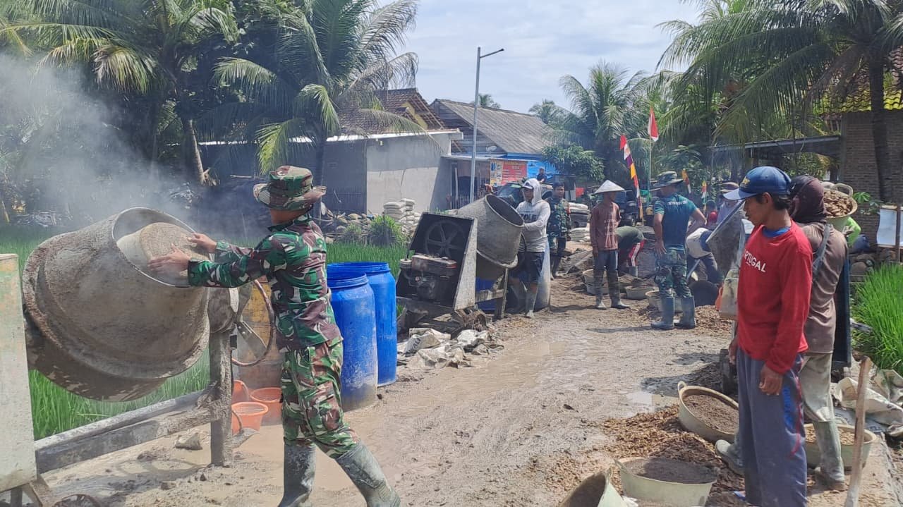 Pesawaran — Pelaksanaan pembangunan rabat beton pada program TNI Manunggal Membangun Desa (TMMD) ke-127, yang diadakan oleh Kodim 0421/Lampung Selatan, menciptakan semangat kebersamaan yang tinggi. Di Desa Tanjung Rejo, terlihat prajurit TNI dan warga setempat bekerja sama secara intensif dalam proses pengecoran jalan. Saling bahu-membahu, mereka mengangkat pasir, mencampur semen, dan meratakan adukan beton, menunjukkan semangat gotong royong yang tinggi.
