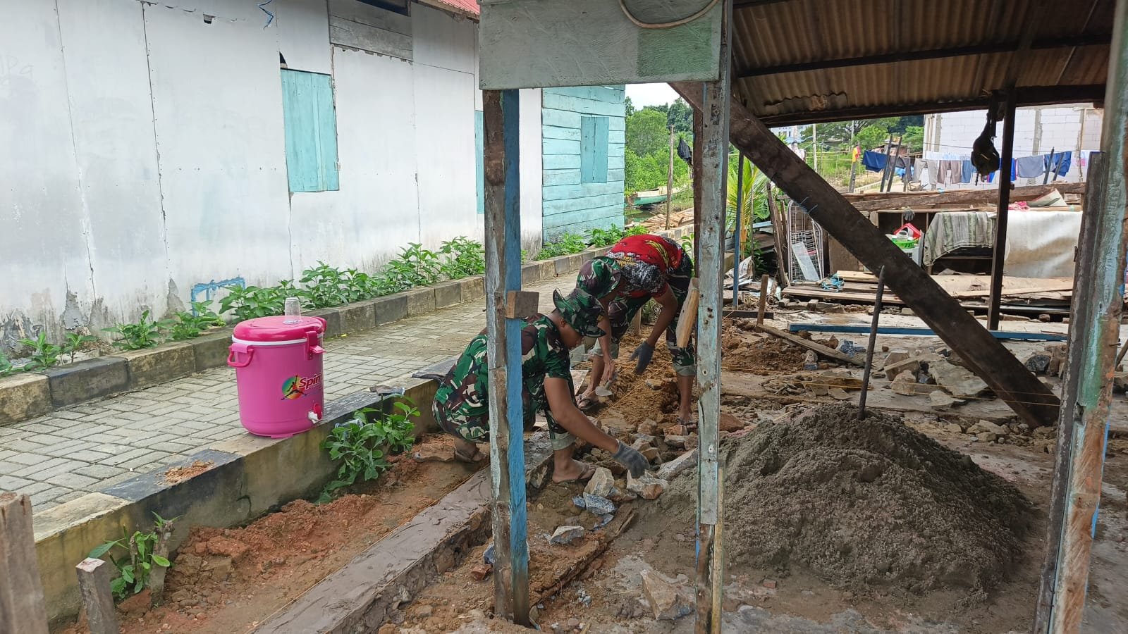 Kerjasama ini terlihat jelas saat pengerjaan pondasi proyek, di mana prajurit TNI dan warga berkolaborasi dengan semangat untuk menciptakan hunian yang lebih sehat dan layak bagi masyarakat yang menerima bantuan.