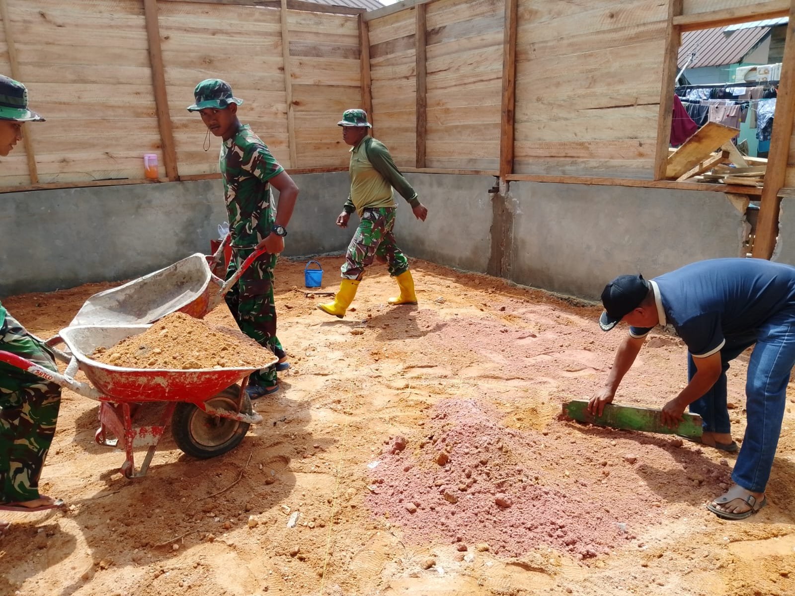 Kendari — Pelaksanaan program TNI Manunggal Membangun Desa (TMMD) ke-127 oleh Kodim 1417/Kendari menunjukkan semangat kolaborasi antara TNI dan masyarakat di Kelurahan Petoaha pada Sabtu (7/3). Dalam kegiatan ini, para personel Satgas bekerja sama dengan warga setempat melakukan penimbunan material, yang merupakan bagian dari pembangunan lantai rabat beton, salah satu target utama program TMMD.