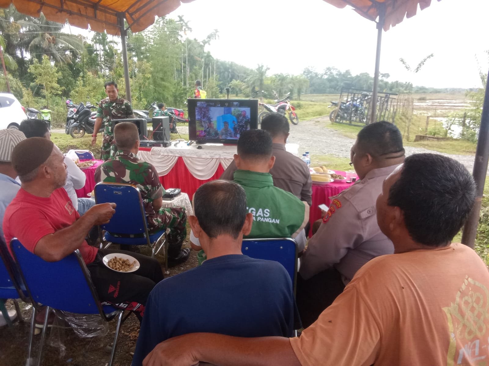 Dari balik layar, KASAD Jenderal TNI Maruli Simanjuntak, M.Sc., yang terhubung secara online melalui via Video Conference seluruh Indonesia memberikan arahan agar program Manunggal TNI dengan Petani terus digiatkan secara berkelanjutan sebagai langkah konkrit memperkuat Ketahanan Pangan nasional.