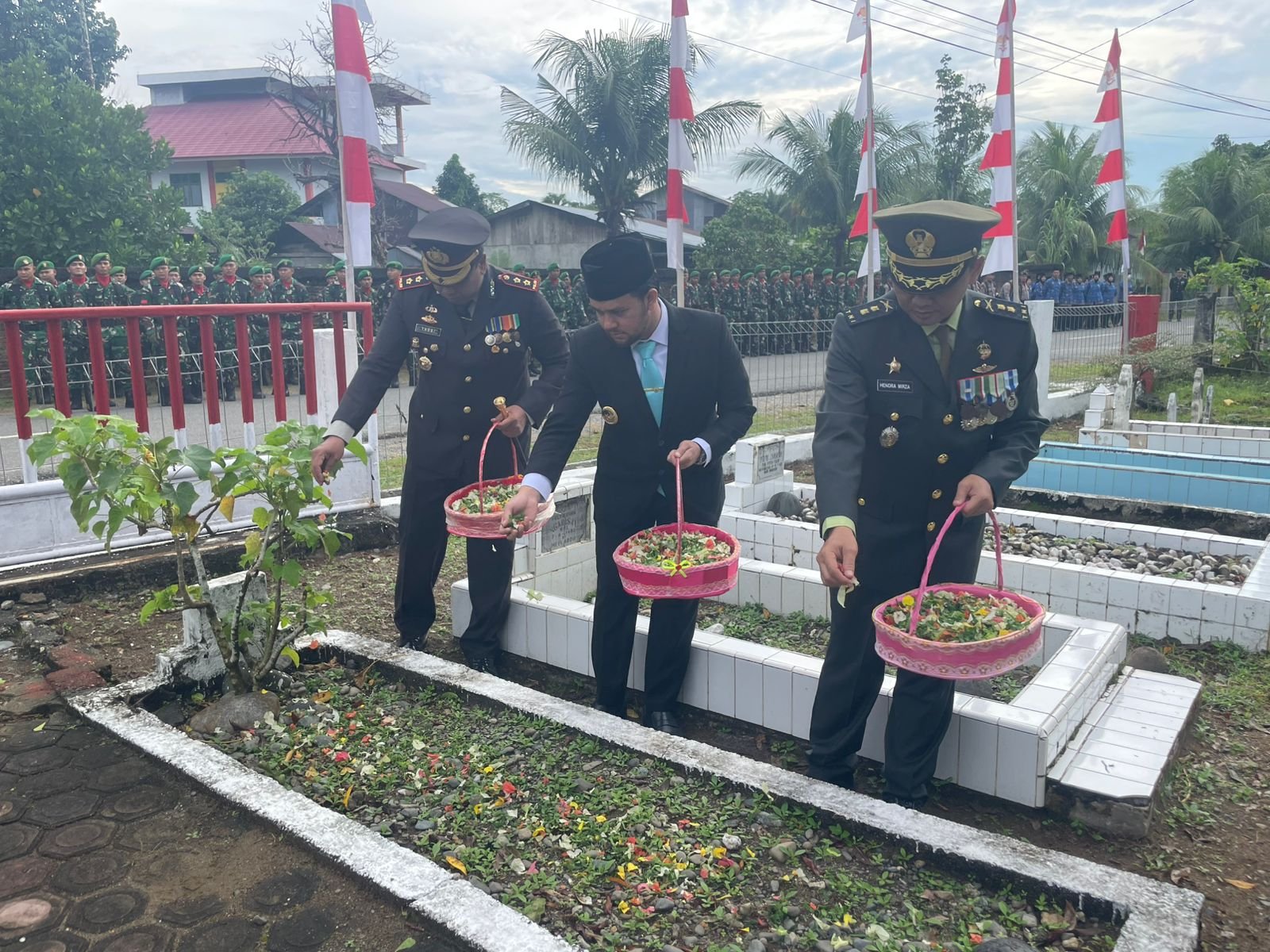 ACEH BARAT – Dalam rangka memperingati Hari Pahlawan ke-80 Tahun, Forkopimda Aceh Barat menggelar Upacara Tabur Bunga dan Heningkan Cipta di Taman Makam Pahlawan (TMP) Desa Rundeng Lama serta upacara di Halaman Kantor Bupati Aceh Barat yang berlokasi di Jalan Gajah Mada, Desa Drien Rampak, Kecamatan Johan Pahlawan, Senin (10/11/2025).