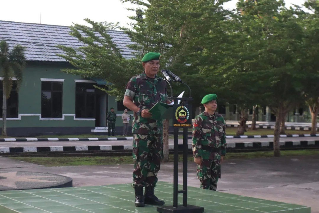 Upacara tersebut dipimpin oleh Pasi Pers Kodim 0303/Bengkalis, Kapten Arm Yogi Sudarso, mewakili Dandim 0303/Bengkalis, Letkol Arh Irvan Nurdin, S.E., M.M. Kegiatan ini diikuti oleh seluruh prajurit dan staf Kodim sebagai bagian dari pembinaan kedisiplinan dan penguatan jiwa kebangsaan.