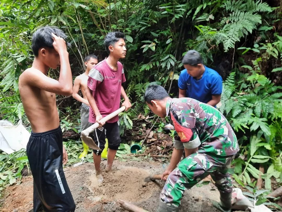 Bungo – Dalam rangka mendukung penyediaan air bersih bagi masyarakat, Kodim 0416/Bute melalui Koramil 416-01/Rantau Pandan membangun saluran air bersih yang bersumber langsung dari mata air di wilayah tersebut. Air bersih ini akan dialirkan ke Pondok Pesantren (Ponpes) Babul Muarif serta warga sekitar di Desa Timbolasi, Kecamatan Bathin III Ulu, Kabupaten Bungo, Sabtu (15/02/2025).