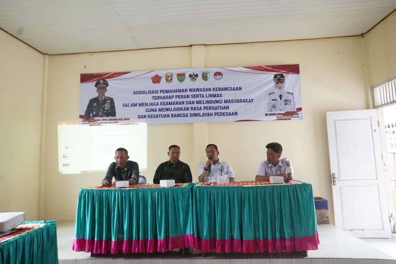 Pesawaran — Untuk meningkatkan kesadaran nasionalisme, Kodim 0421/Lampung Selatan melaksanakan sosialisasi tentang Wawasan Kebangsaan (Wasbang) yang berfokus pada peran Linmas dalam menjaga keamanan masyarakat. Kegiatan ini bertujuan untuk memperkuat kolaborasi antara Linmas, aparat keamanan, dan masyarakat desa demi terciptanya suasana yang aman, teratur, dan kondusif. Peserta yang hadir mendapatkan penjelasan mengenai pentingnya kerja sama, perhatian terhadap lingkungan sosial, serta tanggung jawab kolektif dalam mempertahankan stabilitas daerah. Dengan program TMMD ini, Tentara Nasional Indonesia berkomitmen untuk membangun karakter kebangsaan sekaligus memperkuat kemanunggalan antara TNI dan rakyat.