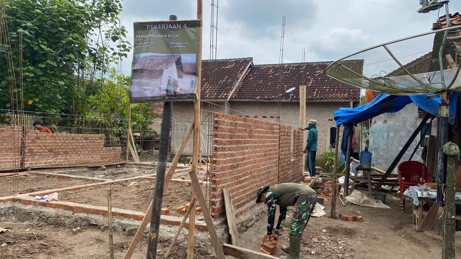 Kodim 0421/LS Lanjutkan Proyek Rehab RTLH di Pesawaran dengan Pemasangan Batu Bata Merah