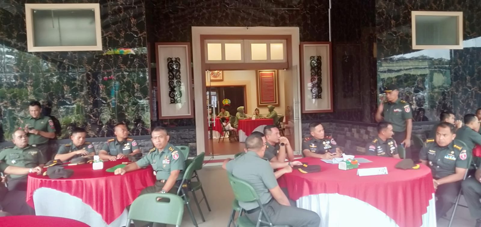 Para anggota TNI dari Kodim 1001/HSU terlihat berpartisipasi aktif dalam membantu kelancaran acara, termasuk memberikan pelayanan terbaik kepada pengunjung yang datang di standnya.