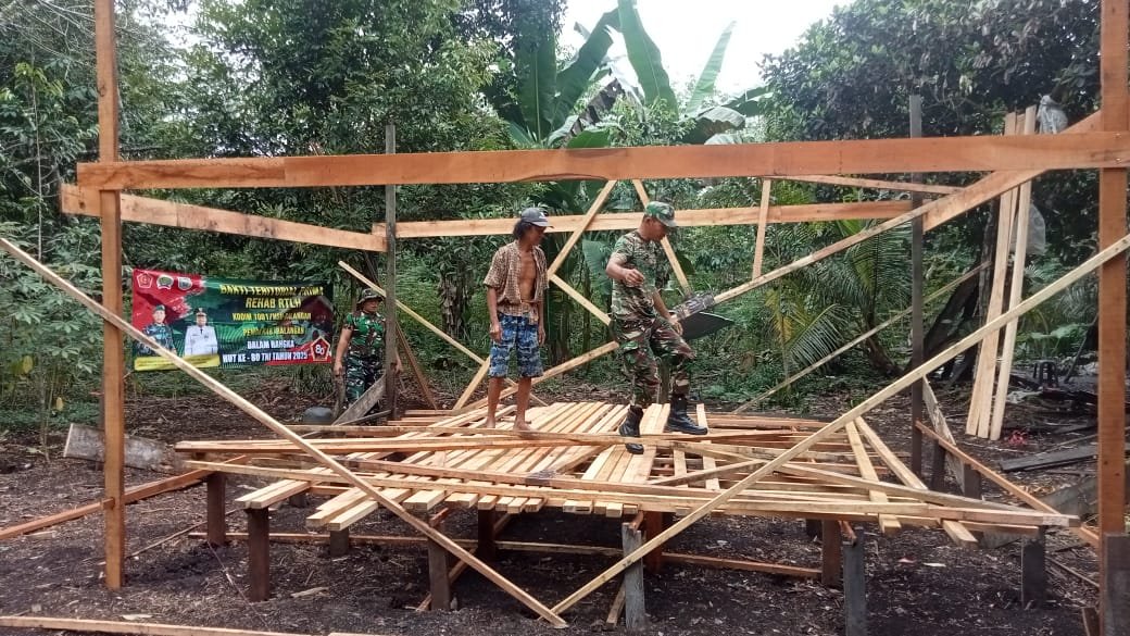 Balangan – Dalam rangka memperingati Hari Ulang Tahun (HUT) ke-80 Tentara Nasional Indonesia (TNI), Kodim 1001/HSU-BLG bersama Pemerintah Daerah Kabupaten Balangan melaksanakan kegiatan Bakti Sosial berupa Rehabilitasi Rumah Tidak Layak Huni (RTLH) bagi warga kurang mampu.
