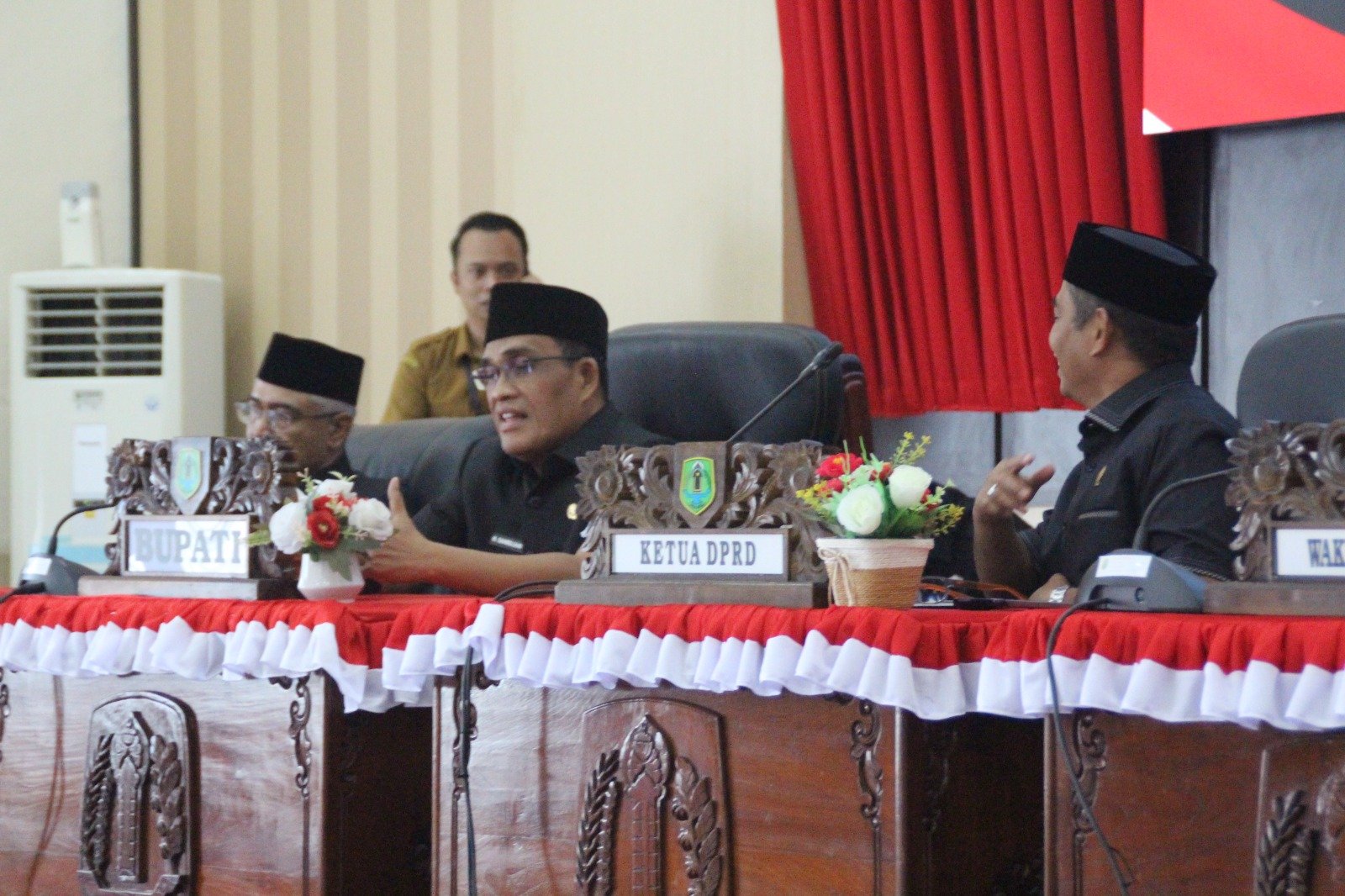 Rapat saat ini adalah rapat lanjutan yang telah dilaksanakan pada rapat tanggal 4 Desember 2024 yang lalu untuk Penyampaian pemandangan umum Fraksi-fraksi DPRD tentang Penyampaian Umum Fraksi DPRD Terhadap 4 (empat) Buah Raperda dan Penyampaian Pendapat Kepala Daerah terhadap 3 (tiga) Raperda Prakarsa DPRD Kab Hulu Sungai Utara, adapun penyampaian pemandangan umum Fraksi-fraksi DPRD Daerah terhadap 4(empat ) Buah Raperda Kabupaten Hulu Sungai Utara yaitu,rancangan Peraturan Daerah Tentang Inovasi Daerah,rancangan Peraturan Daerah Tentang Pemberian Insentif dan Pemberian Kemudahan /Pemberian Kemudahan Investasi Kepada Masyarakat dan / Investor,rancangan Peraturan Daerah Tentang Perubahan Kedua Atas Perda Kabupeten HSU Nomer 12 Tahun 2016 Tentang Pembentukan dan Susunan Perangkat Daerah,dan rancangan Peraturan Daerah Tentang Penyelenggaraan Kabupaten Layak Anak.