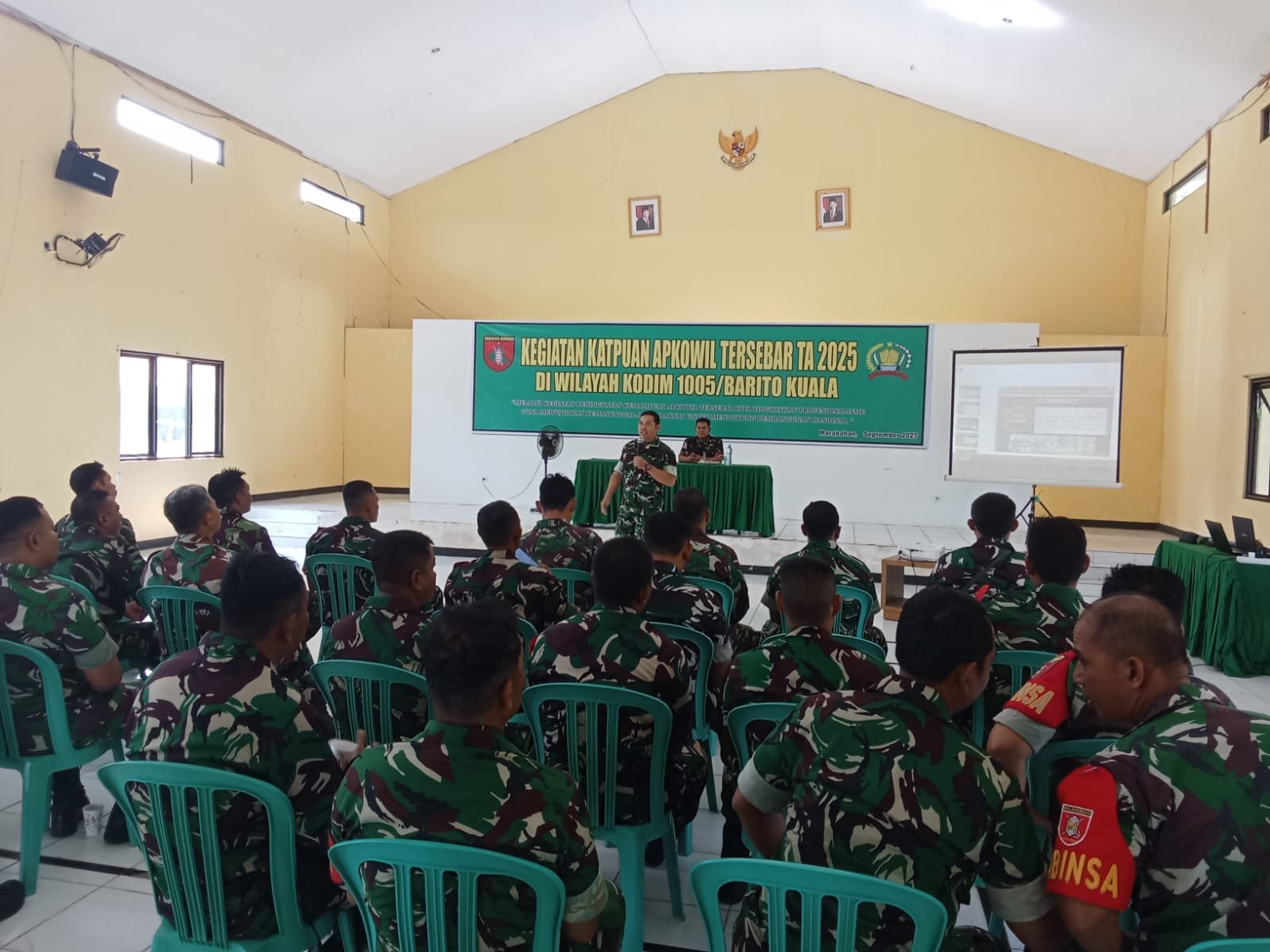 Barito Kuala, Kalimantan Selatan – Kodim 1005/Barito Kuala melaksanakan kegiatan Wasgiat Katpuan Apkowil Tersebar TA 2025 yang digelar di Aula Mochammad Yamin, Makodim 1005/Barito Kuala, Jalan Patmaraga, Kelurahan Ulu Benteng, Kecamatan Marabahan, Kabupaten Barito Kuala, Senin (15/9/2025) pukul 09.00 WITA.