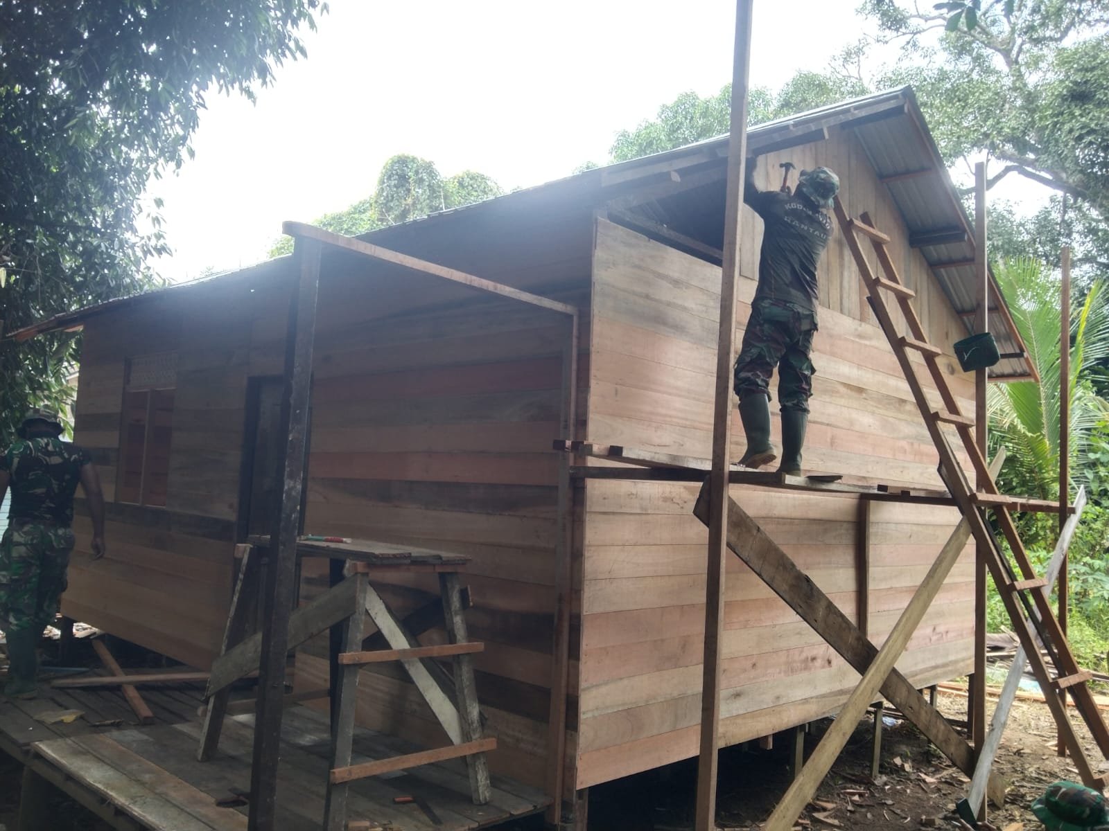 TAPIN – Program perehaban Rumah Tidak Layak Huni (RTLH) yang tengah dilaksanakan Kodim 1010/Tapin terus menunjukkan progres signifikan. Memasuki hari keempat, tim di lapangan sudah sampai pada tahap pengecatan dan pemasangan dinding bagian atas rumah milik Aliansyah, warga Kelurahan Bitahan RT 001 RW 001, Kecamatan Lokpaikat, Kabupaten Tapin. Pada Kamis (18/09).