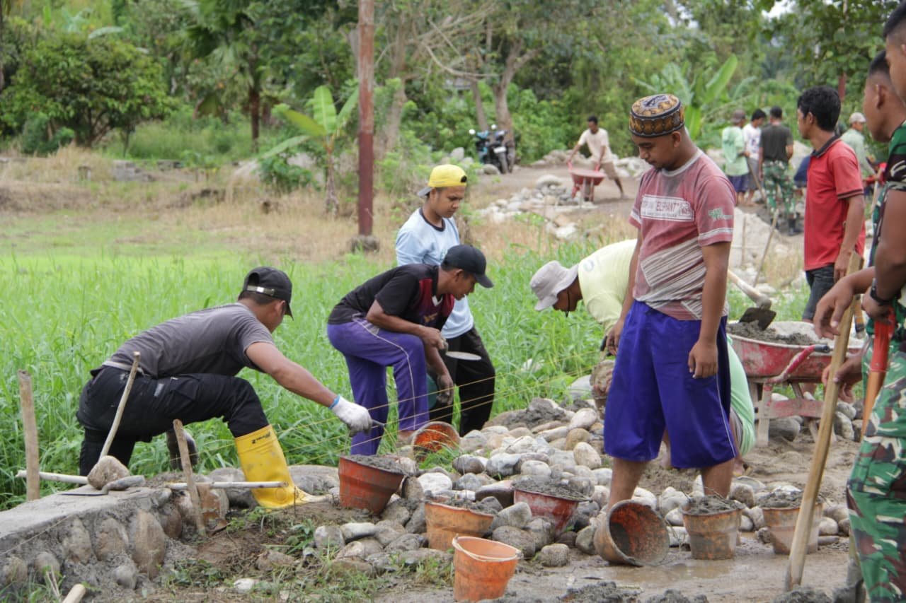 Kodim 1305/Buol Tolitoli Lanjutkan Proyek Pengerasan Jalan dan Talud di Tolitoli