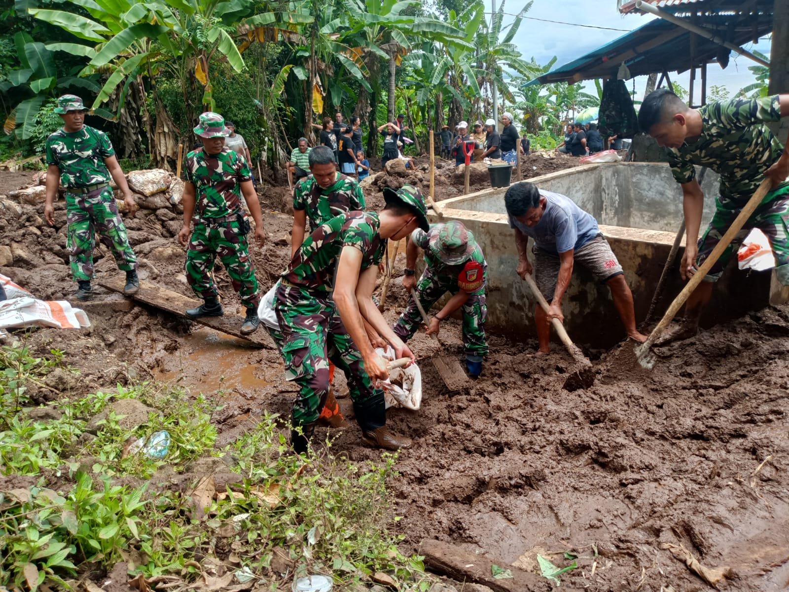 “Kami bersama warga bergotong royong membersihkan material longsor yang menutup akses jalan dan pekarangan rumah. Ini adalah wujud kepedulian dan tanggung jawab kami sebagai aparat teritorial untuk selalu hadir membantu masyarakat,” ujar Marpin.