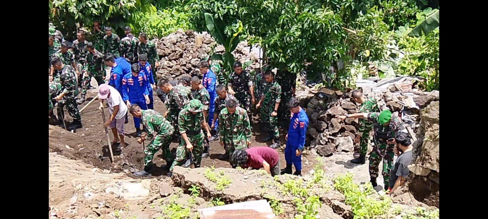 Sebanyak 20 personel Kodim 1310/Bitung, 30 personel YTP 916/BS, dan 10 personel Polairud Polda Sulut yang dipimpin oleh Pasi Ops Kodim 1310/Bitung, Lettu Inf Edyzon Kasenda, melakukan pembersihan dan evakuasi sisa bangunan yang tertimpa.