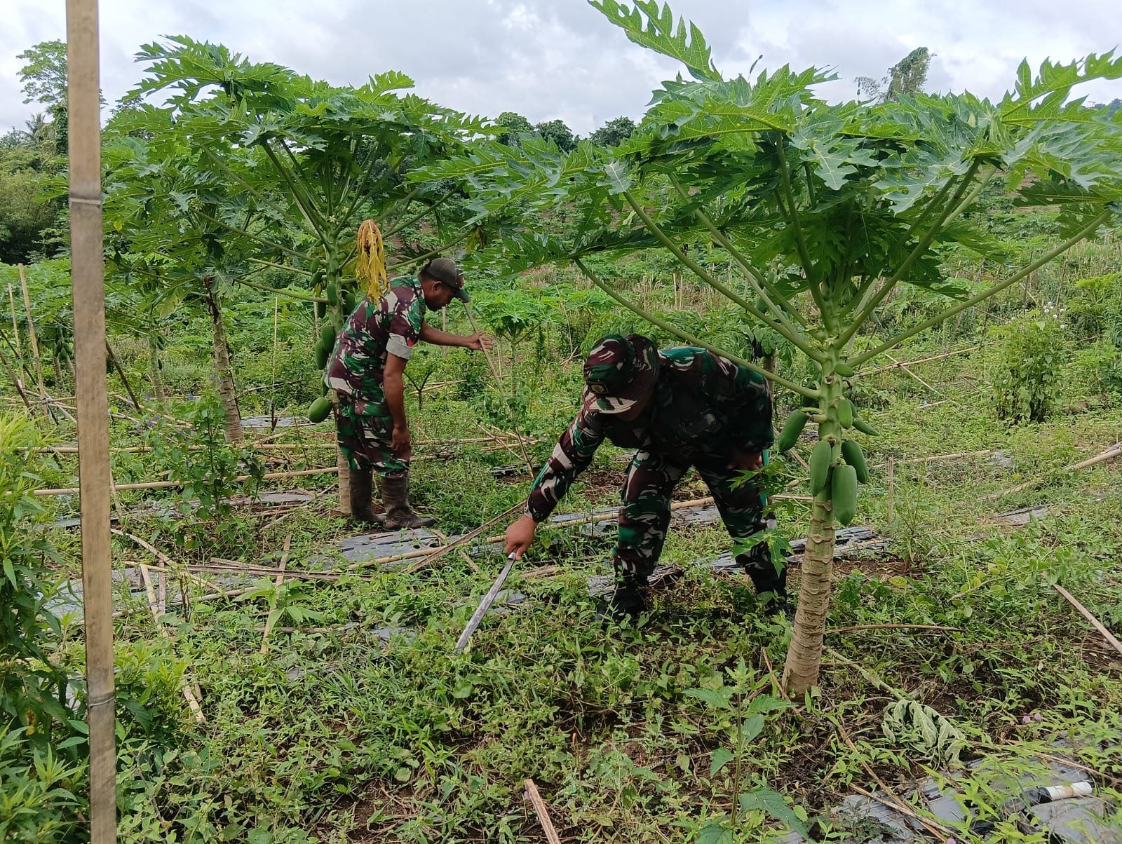 Kegiatan di lahan Kompi Produksi mencakup penanaman kacang panjang, pembersihan kebun pisang Calvendis, serta perawatan tanaman pepaya California dan cabai, termasuk pemberian pakan ayam. Menurut Danramil Stenli Andaria, perawatan rutin ini krusial untuk memastikan tanaman tumbuh dengan baik. Dengan perawatan yang konsisten, diharapkan hasil panen dapat optimal, sehingga bisa mendukung ketersediaan pangan masyarakat.