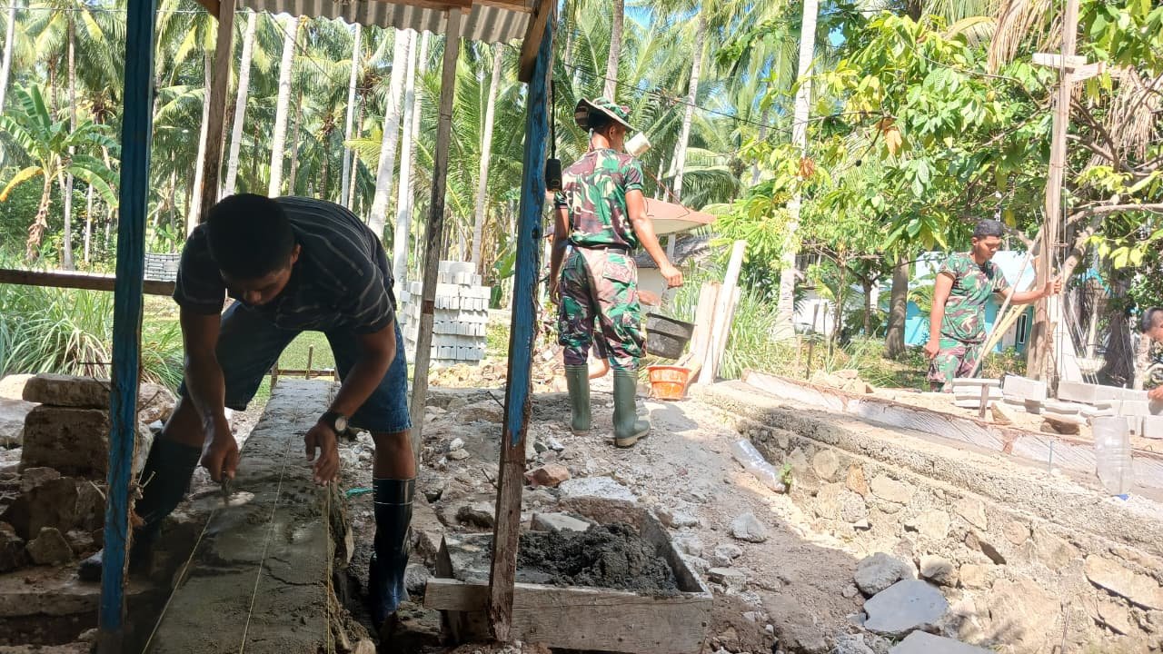 Pemandangan menarik terlihat di lapangan: tidak ada sekat antara seragam loreng dan kaos oblong warga desa. Mereka bekerja dalam satu irama, bahu-membahu mengangkut material dan memasang rangkaian besi tulangan. Semangat gotong royong yang sempat memudar kini kembali menyala hebat di desa ini.