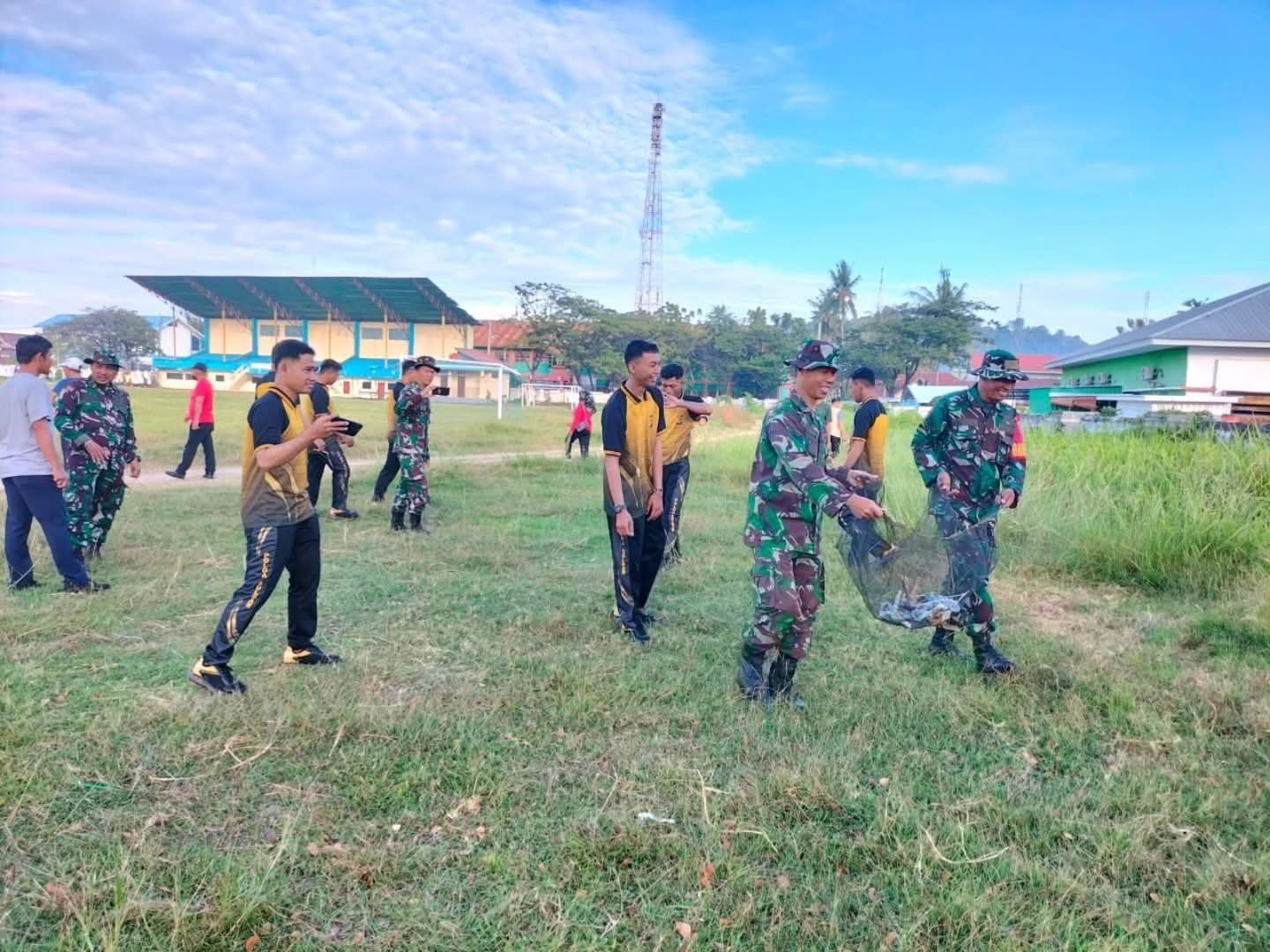 Majene – Komando Distrik Militer (Kodim) 1401/Majene kembali menunjukkan komitmennya dalam mendukung program Pemerintah Daerah (Pemda) Kabupaten Majene melalui partisipasi aktif dalam kegiatan kerja bakti bersama di Stadion Prasamya Mandar. Kegiatan ini merupakan bagian dari Gerakan Majene Mappaccing yang bertujuan menciptakan lingkungan bersih, sehat, dan nyaman.