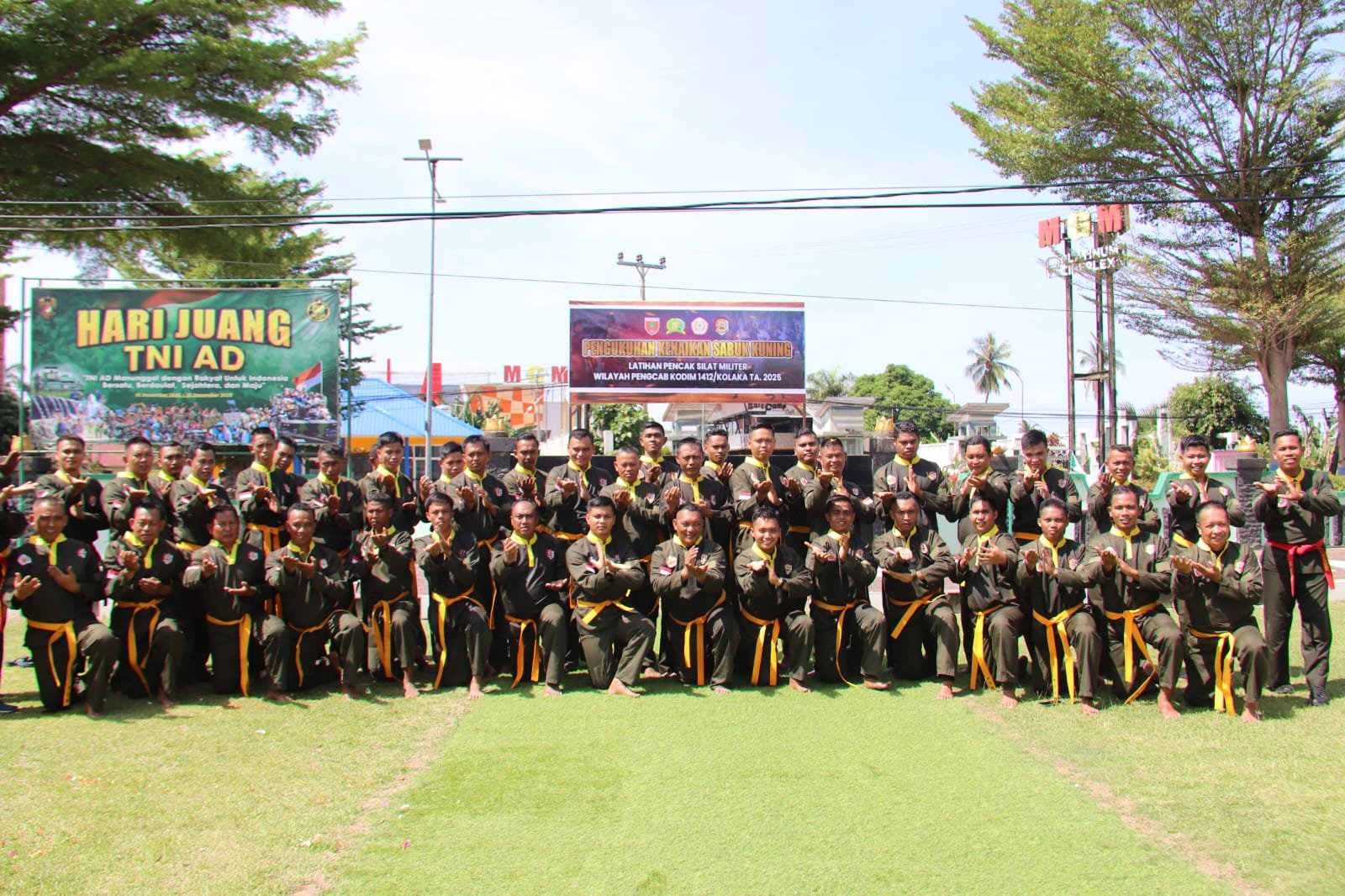 Kolaka, 24 Januari 2026 – Pengurus Cabang (Pengcab) Kodim 1412/Kolaka menyelenggarakan pengukuhan kenaikan sabuk kuning sebagai bagian dari program pembinaan bela diri bagi anggota. Kegiatan ini bertujuan untuk meningkatkan kualitas kemampuan dan prestasi para peserta dalam bidang bela diri, yang berlangsung secara tertib dan lancar.