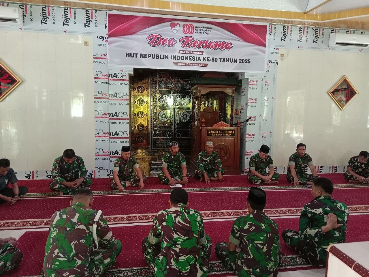 Sidrap – Dalam rangka memperingati Hari Ulang Tahun (HUT) Ke-80 Kemerdekaan Republik Indonesia, Kodim 1420/Sidrap melaksanakan doa bersama di Masjid Makodim 1420/Sidrap, Jl. Jenderal Sudirman, Kelurahan Majjelling Wattang, Kecamatan Maritengngae, Kabupaten Sidenreng Rappang, Jumat (15/08/2025)