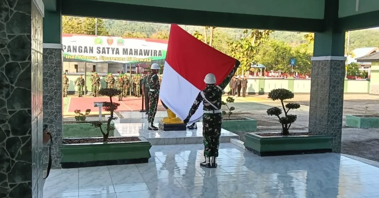 Bombana – Komando Distrik Militer (Kodim) 1431/Bombana menggelar upacara bendera awal bulan Agustus 2025 yang berlangsung khidmat di Lapangan Satya Mahawira, Makodim 1431/Bombana, Jalan Poros Kendari-Bombana, Desa Hukaea, Kecamatan Rarowatu Utara, Kabupaten Bombana, Sulawesi Tenggara, pada Senin (4/8/2025).