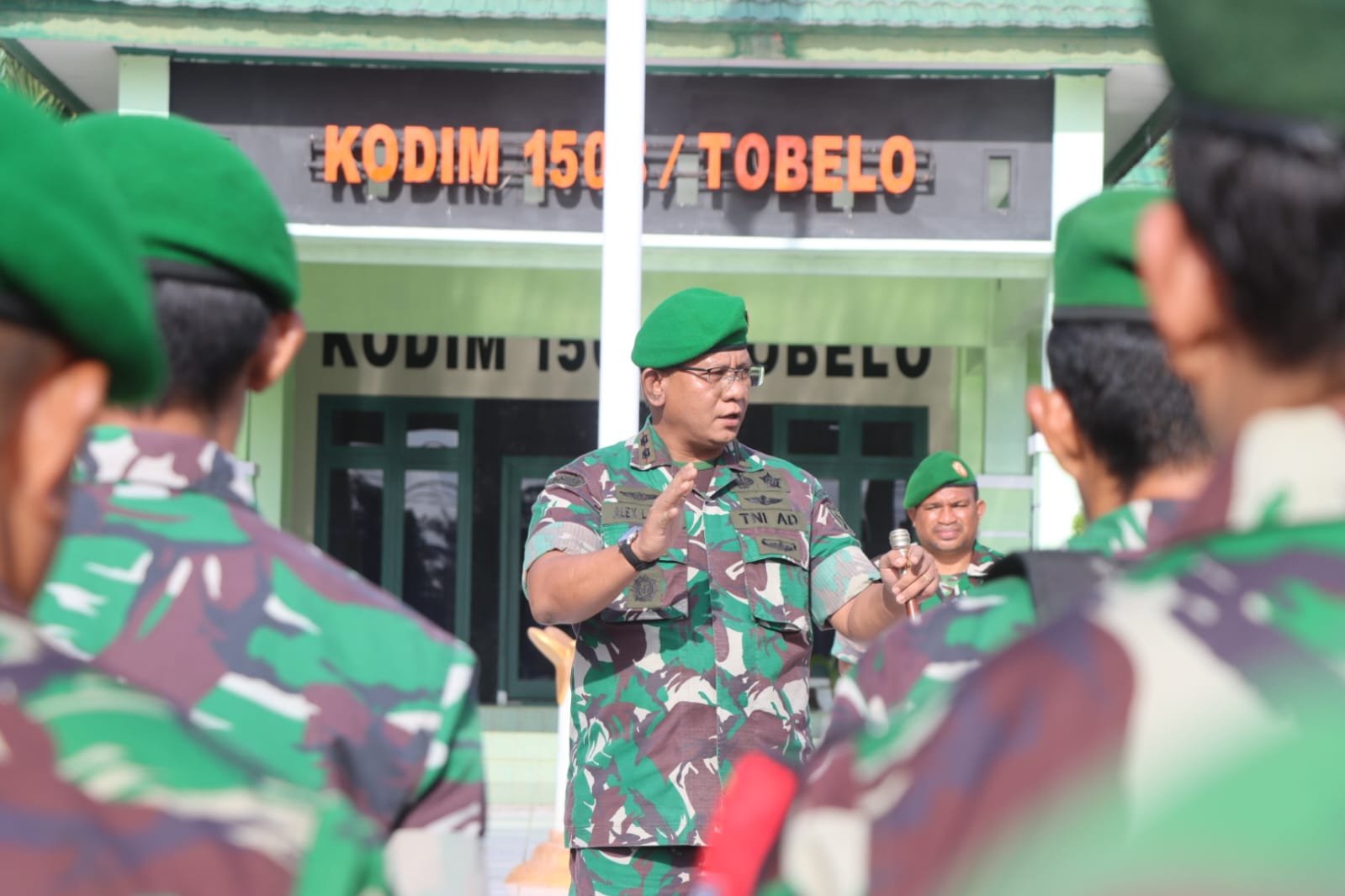 Apel ini dipimpin oleh Dandim 1508/Tobelo, Letkol Inf Alex Donald M.L. Gaol, S.E., M.M., dihadiri oleh seluruh personel. Dalam sambutannya, Dandim menyatakan bahwa situasi menjelang hari raya mengharuskan satuan untuk berada dalam kondisi siap, responsif, dan berdasarkan analisis potensi kerawanan di wilayah.