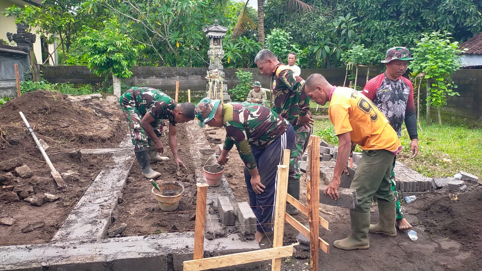 Pada hari ini, tim yang terdiri dari prajurit terpilih, dipimpin oleh Sertu Koloman, terjun langsung untuk memperbaiki rumah Bapak Dewa Putu Dika, yang kondisinya sangat memprihatinkan. Dengan semangat yang tinggi, para prajurit berkolaborasi bersama tim tukang melakukan pemasangan pondasi rumah. Pembangunan pondasi yang kuat menjadi langkah awal untuk memastikan rumah yang dibangun memiliki daya tahan yang baik.