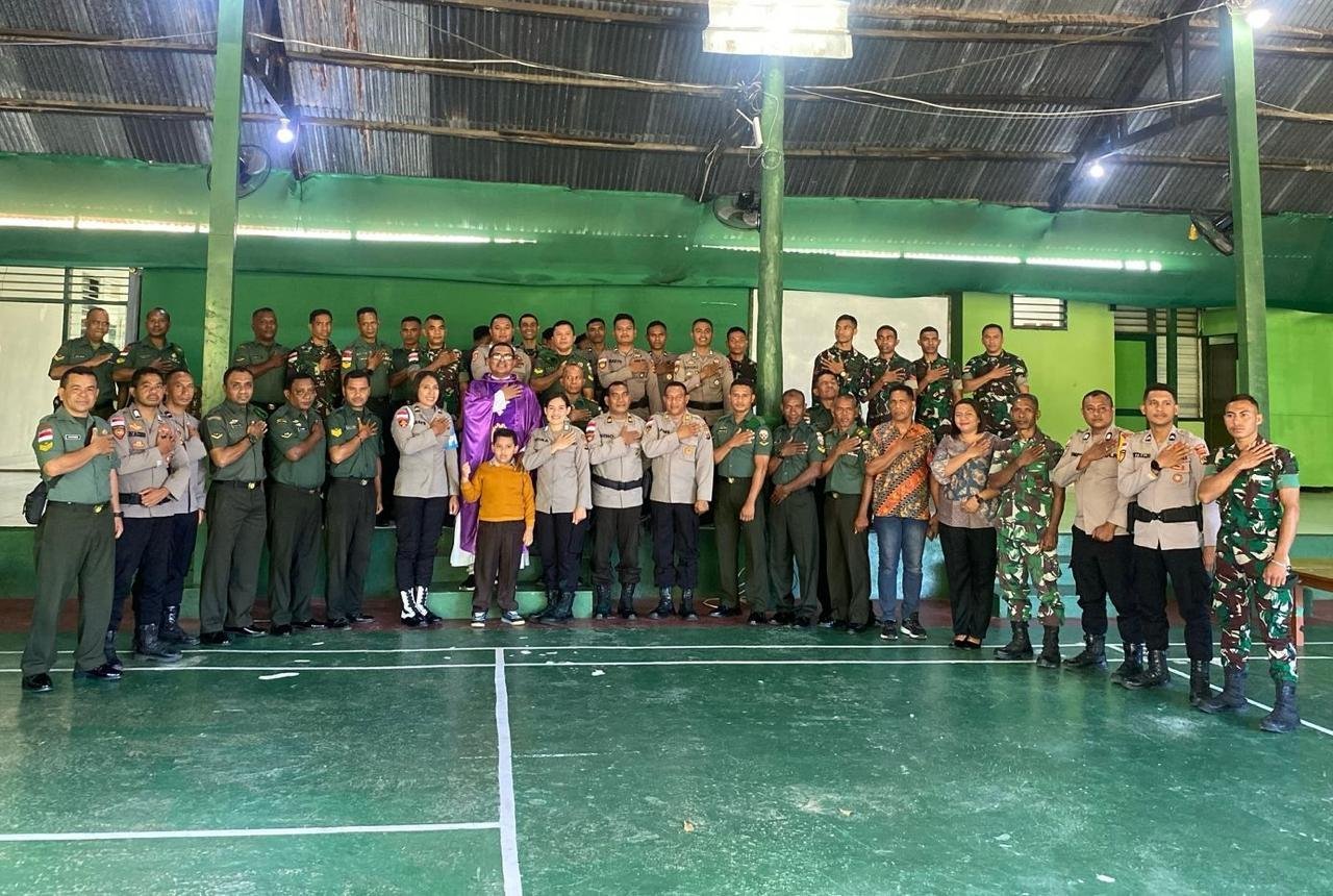 Para peserta kegiatan dari berbagai satuan: Personel Kodim 1618/TTU, Kompi Senapan C Yonif 744/SYB, serta anggota Polres TTU yang beragama Katolik. Momen ini menjadi ajang untuk bersatu, bukan dalam barisan militer, tapi dalam ikatan spiritual sebagai anak-anak Tuhan yang siap melayani tanpa pamrih.