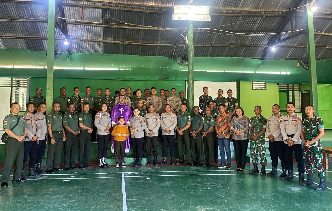 Para peserta kegiatan dari berbagai satuan: Personel Kodim 1618/TTU, Kompi Senapan C Yonif 744/SYB, serta anggota Polres TTU yang beragama Katolik. Momen ini menjadi ajang untuk bersatu, bukan dalam barisan militer, tapi dalam ikatan spiritual sebagai anak-anak Tuhan yang siap melayani tanpa pamrih.