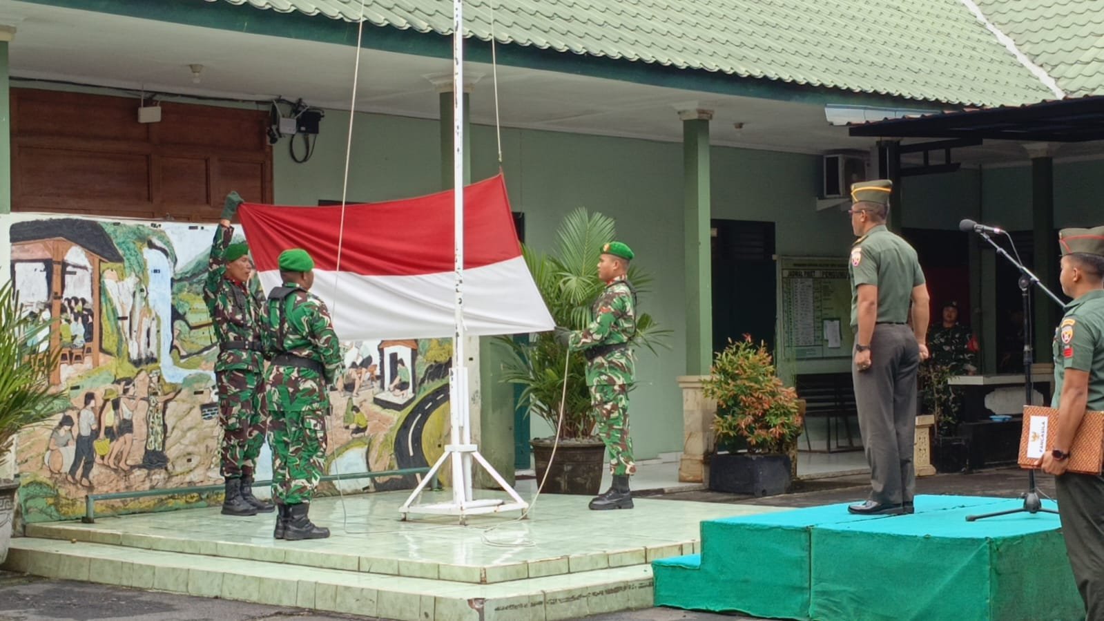 Upacara dimulai dengan persiapan pasukan yang rapi, diikuti oleh penghormatan kepada Inspektur Upacara, lalu dilanjutkan dengan pengibaran Bendera Merah Putih yang diiringi lagu kebangsaan Indonesia Raya. Setelah itu, para peserta melakukan mengheningkan cipta, pembacaan Sapta Marga, dan Sumpah Prajurit. Kegiatan ini ditutup dengan doa dan penghormatan pasukan.