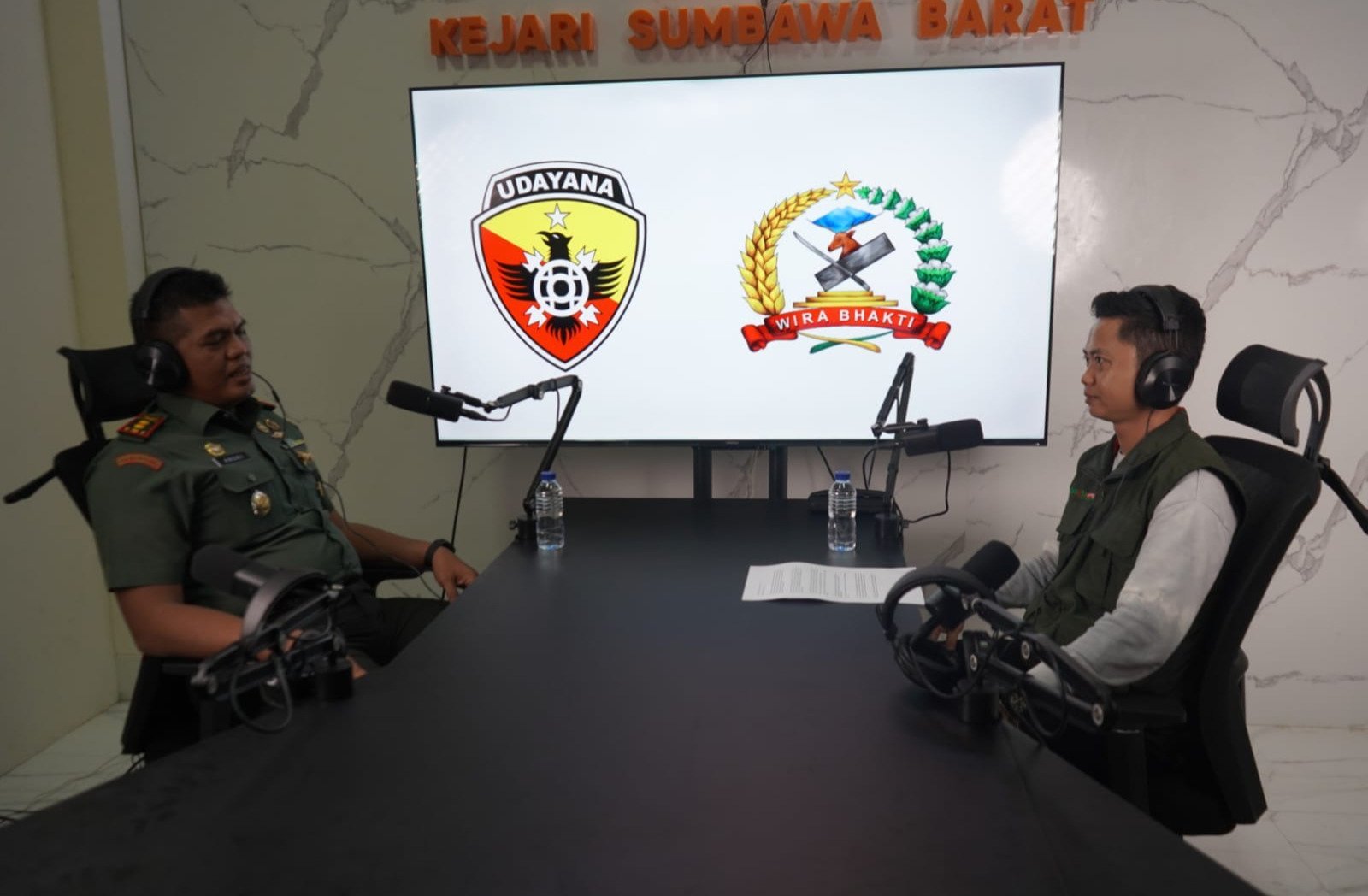 Sumbawa Barat, NTB – Dalam rangka memberikan informasi terkait rekrutmen TNI-AD tahun 2025, Komandan Kodim (Dandim) 1628/Sumbawa Barat, Letkol Inf Andri Karsa, S.Sos., M.Han., bersama Danang Mario, seorang jurnalis dari media Barsela, mengadakan podcast yang disiarkan secara live streaming pada Minggu (25/01/25). Kegiatan ini berlangsung di ruang podcast Kejaksaan Negeri Sumbawa Barat, Jalan Raya Telaga Bertong, Kelurahan Telaga Bertong, Kecamatan Taliwang, Kabupaten Sumbawa Barat.
