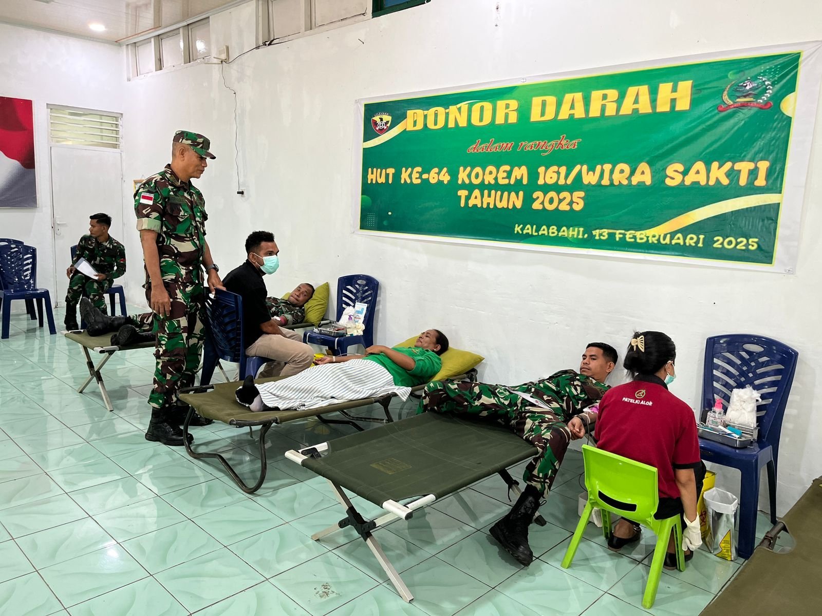 NTT-ALOR – Dalam rangka menyambut Hari Ulang Tahun (HUT) ke-64 Korem 161/Wira Sakti tahun 2025, Kodim 1622/Alor menggelar kegiatan donor darah, di Makodim 1622/Alor, Jln. El Tari, Kelurahan Mutiara, Kecamatan Teluk Mutiara, Kabupaten Alor, Kamis (13/2/2025).