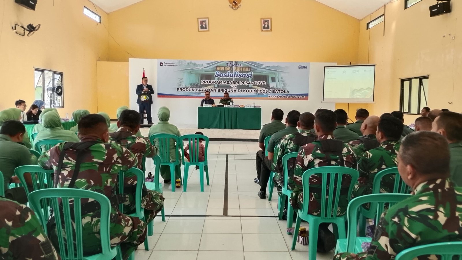 Sosialisasi ini bertujuan memberikan pemahaman komprehensif kepada prajurit, PNS, dan anggota Persit Kartika Chandra Kirana Cabang XXVIII Kodim 1005/Barito Kuala terkait manfaat perlindungan sosial dari Asabri dan layanan pinjaman BRIGuna yang ditawarkan oleh BRI.