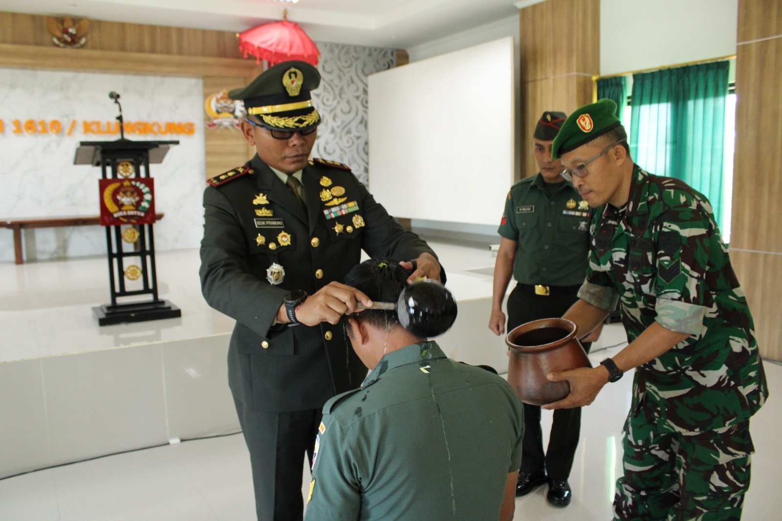 Klungkung,- Diwarnai tradisi siraman air kembang, Serma I Made Pastika secara resmi menjadi keluarga besar Kodim 1610/Klungung. Peresmian itu, ditandai dengan digelarnya acara penerimaan warga baru yang dipimpin langsung oleh Dandim Letkol Kav Sidik Pramono, S.Sos.,M.M., M.Han, Rabu ( 01/10/25 ).